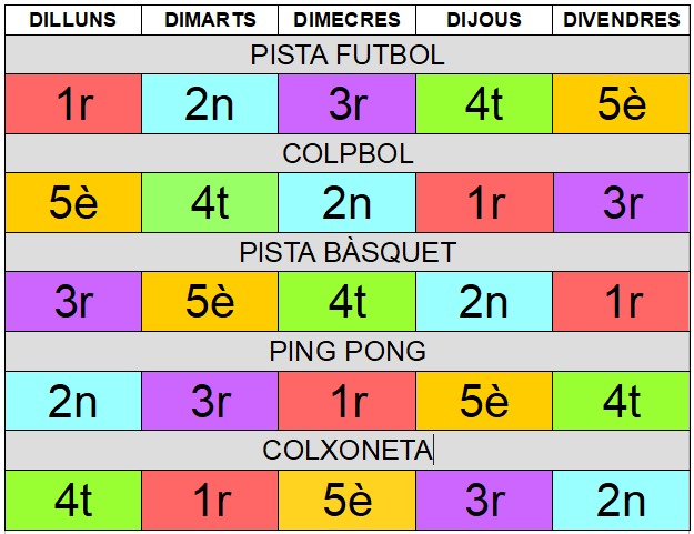 Durant el curs 2021-2022, professorat i famílies vam estar posant color, missatges i jocs a les parets del centre, ja que un grup de mestres al final de curs vam presentar el PIIE anomenat “Divers-ió al nostre pati nou”. Ens el van concedir per a aquest curs, 2022-2023, i el curs que ve. És a dir, de 2022 a 2024. La intenció d’aquest projecte és oferir diferents formes de joc i que el futbol deixe de monopolitzar el joc al pati, quedant excloses aquelles persones que no els agrada o no saben jugar.