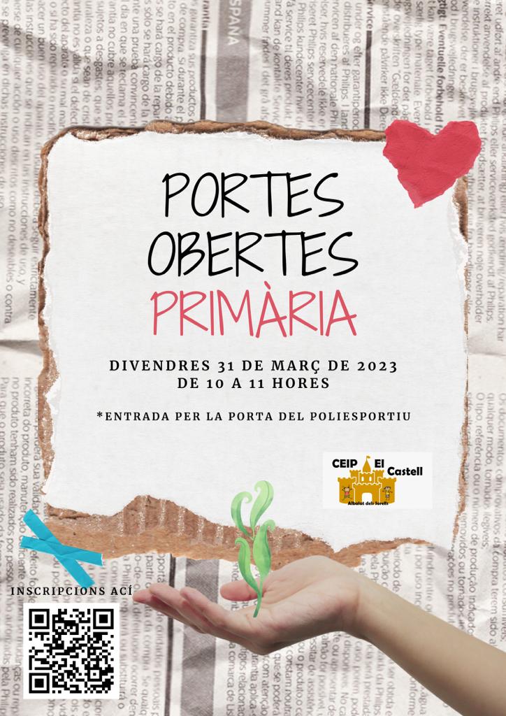 El proper 28 de març l’escola obri les seues portes per a aquelles famílies que estiguen interessades en conéixer-nos. Vos convidem a entrar, veure’ns i resoldre dubtes respecte a la futura escolarització dels i les vostres fills i filles.