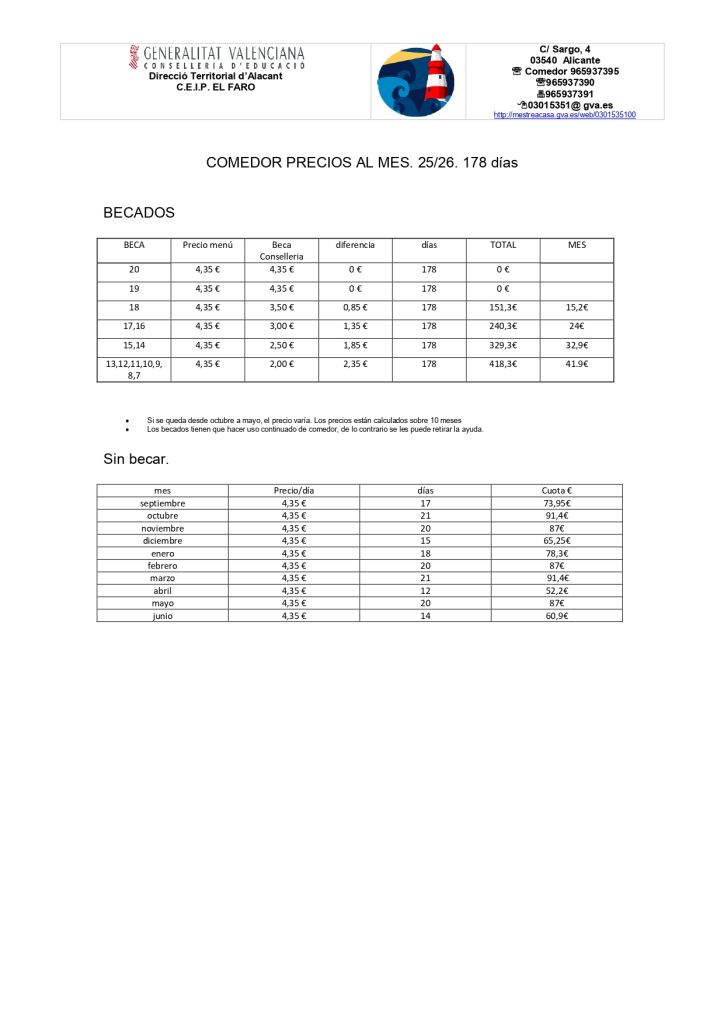 Los menús especiales, los podéis consultar siguiendo la cuenta de telegram CEIPELFAROoficial
