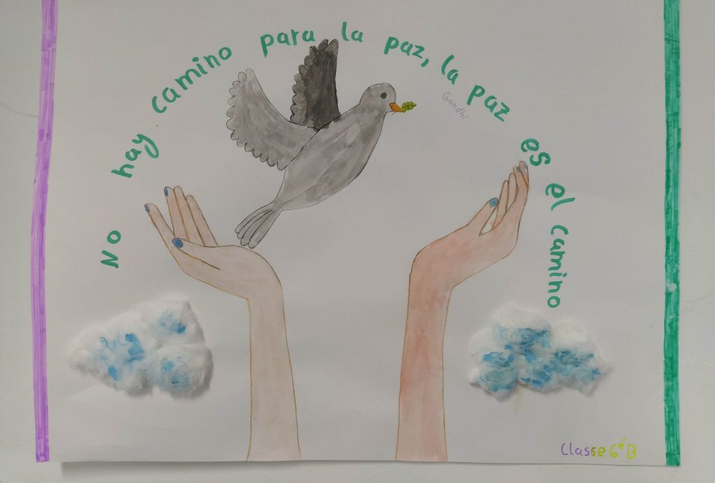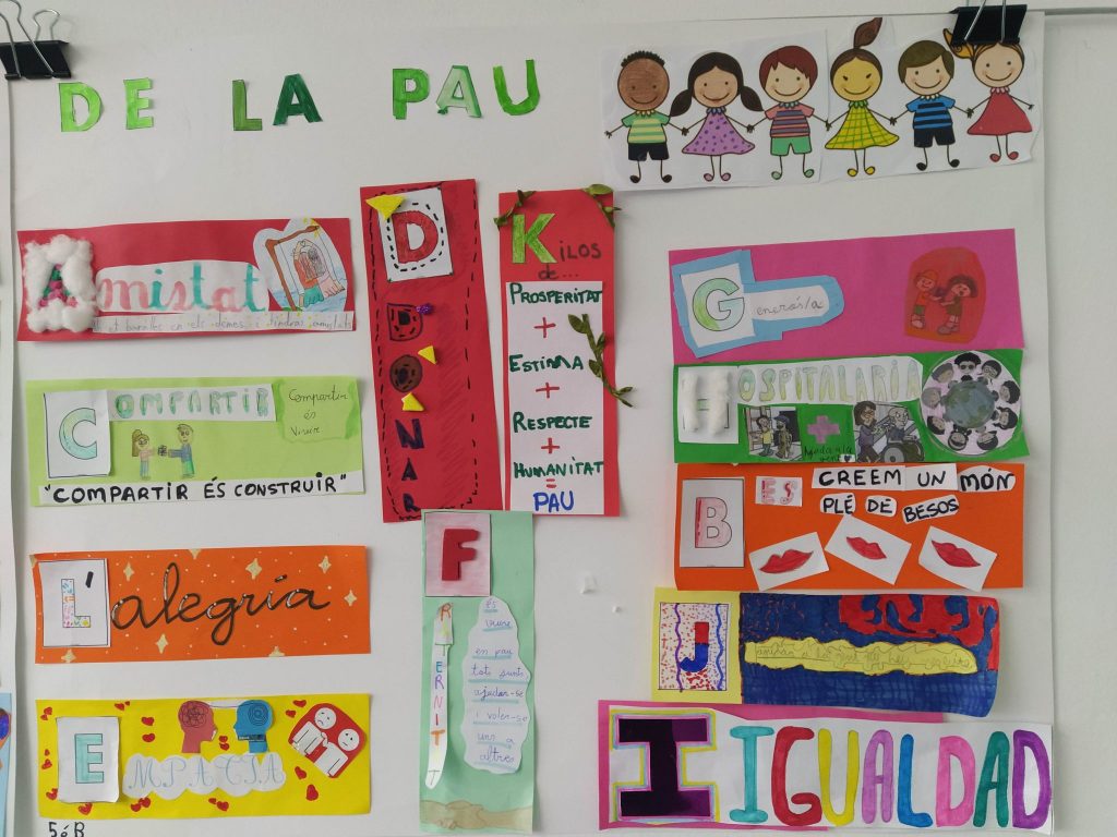 Avui 30 de gener com tots els anys,celebrem el “Dia de la Pau” al nostre centre.Els alumnes del centre Mare de Déu dels Desemparats han realizat diferents murals i un blockposter referent als desitjos, ingredients i valors que fan falta perquè hi haja pau al món. També, aquesta setmana per commemorar este dia hem posat a l’entrada i eixida del centre la cançó : “Pau,Pau,Pau” de l’autor Dani Miquel.