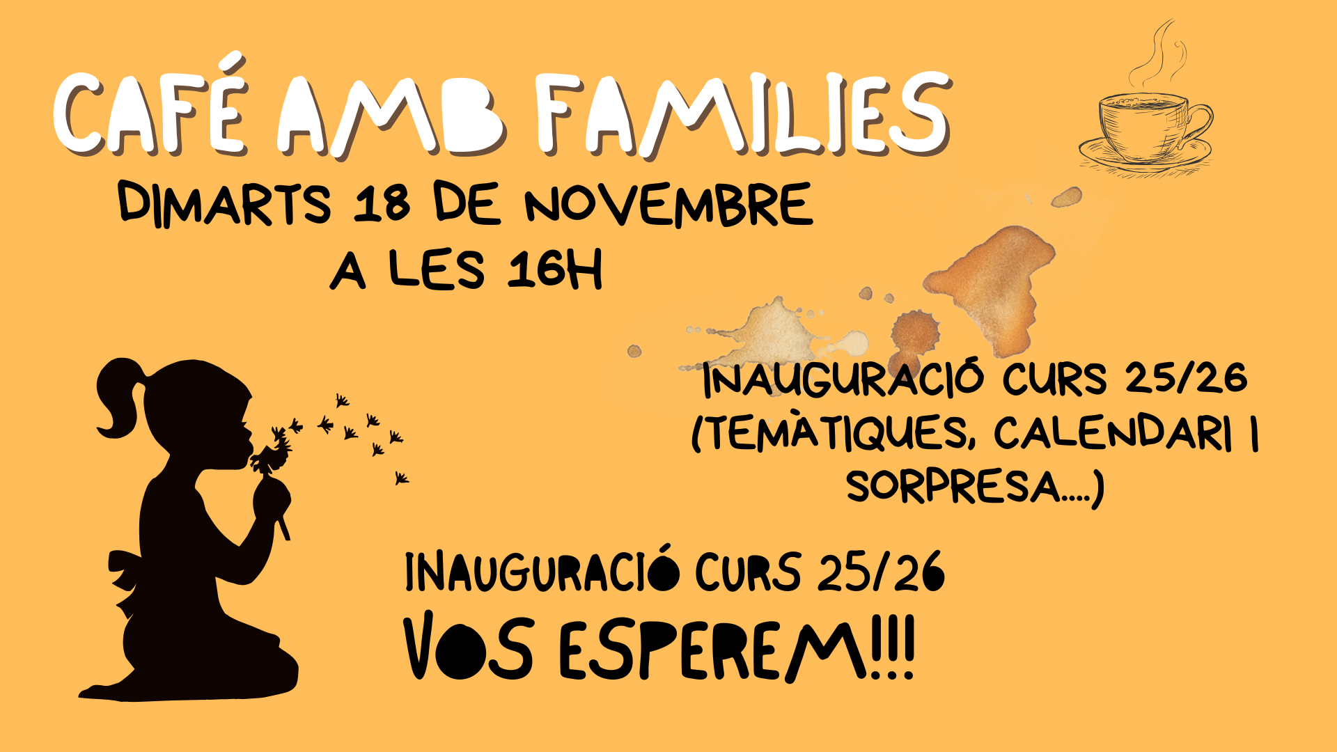 El dimarts 18 de novembre a les 16.00 inaugurem l’espai “Cafés amb famílies” per al present curs 25/26. Aquesta iniciativa està pensada com una xarxa de formació i col·laboració per afavorir els nostres vincles com a comunitat i l’aprenentatge sobre aspectes fonamentals de l’educació dels infants. En aquesta primera sessió recollirem les temàtiques d’interés i presentarem el calendari del curs. Us esperem amb algunes petites sorpreses!