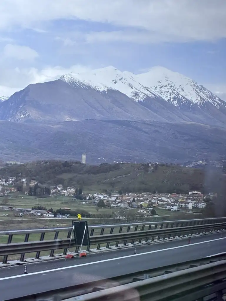 En arribar a Roma encara ens quedava camí, així que vam agafar un tren fins a l’estació d’autobusos. Des d’allí vam pujar a un autobús rumb a Pescara. A poc a poc començàvem a notar que realment estàvem a Itàlia. Mireu quina foto dels Apenins nevats!