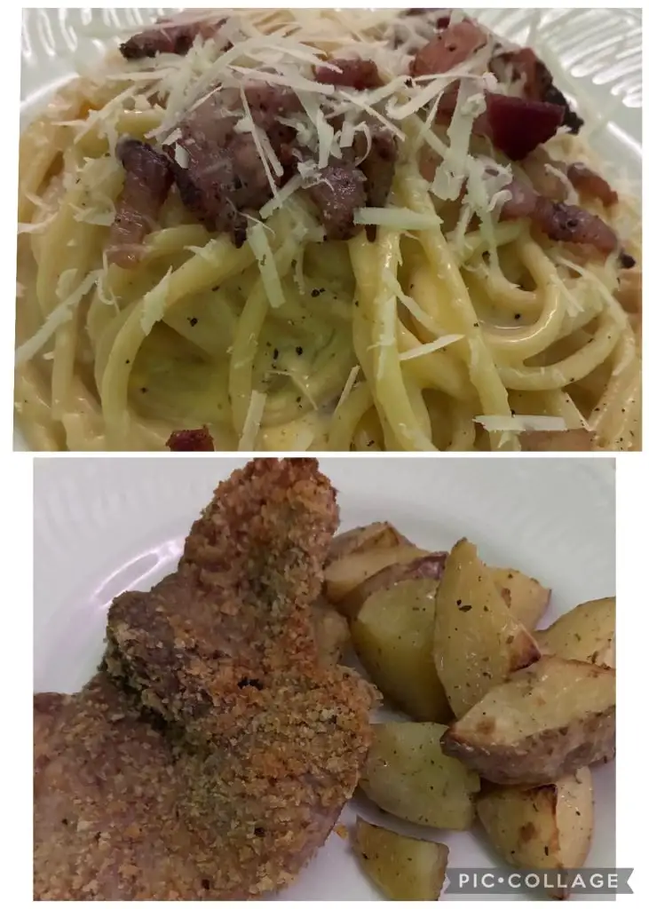 Més tard va arribar el moment de sopar, amb un menú molt italià: pasta carbonara i milanesa, perfecte per a recuperar forces després del viatge.