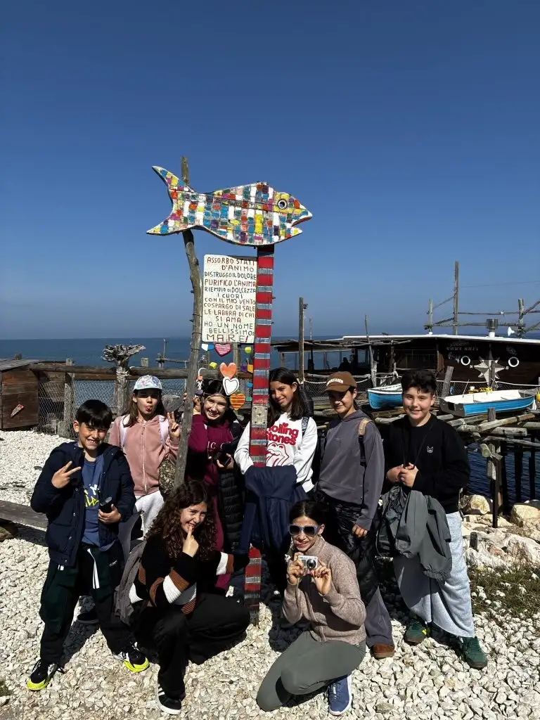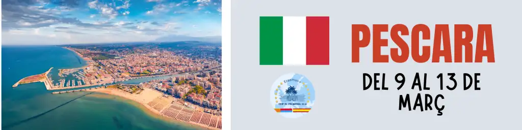 Hui ha sigut el nostre primer dia complet a Pescara i no hem parat en cap moment. Pel matí hem visitat l’institut on estudia el nostre alumnat amfitrió. Per començar a conéixer-nos millor, hem fet una activitat de “speed date”, que ens ha permés parlar amb molts companys i companyes en 4 idiomas diferents: castellà, italià, anglés i txec!. Després hem continuat amb diferents jocs i activitats relacionades amb la petjada de carboni, que ens han fet reflexionar sobre el nostre impacte en el medi ambient d’una manera divertida i participativa.