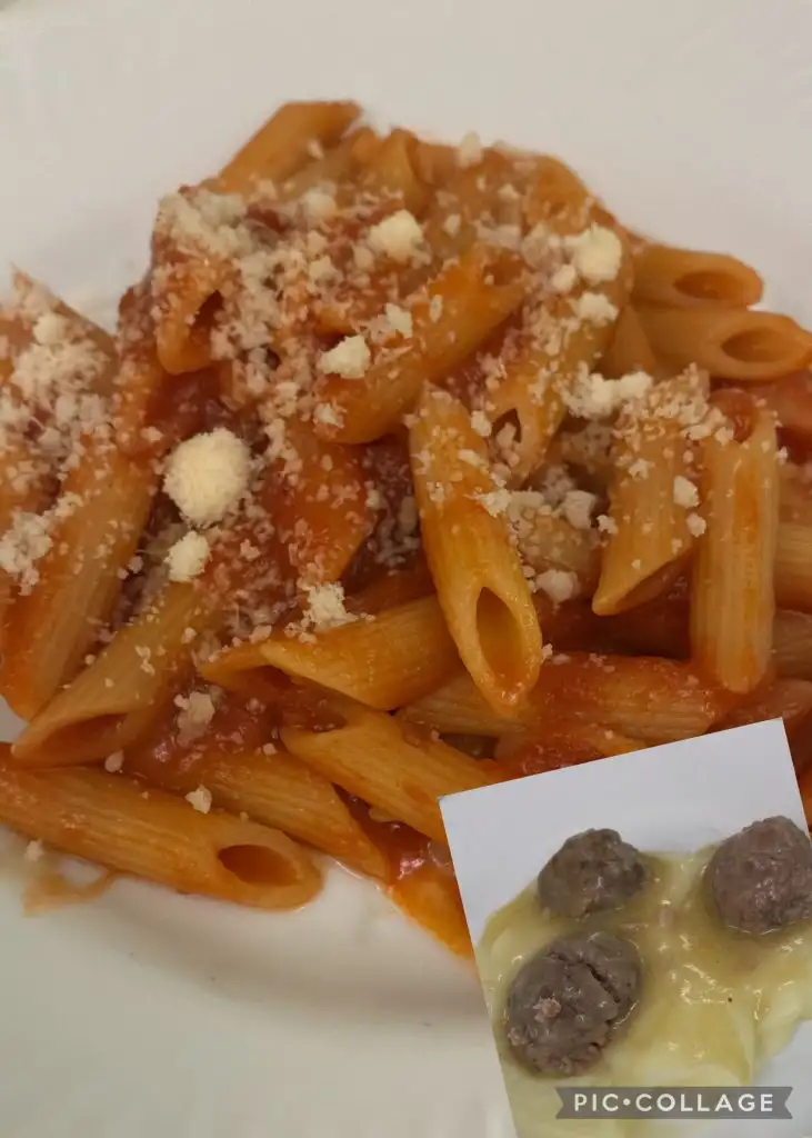 Per sopar hem recuperat forces amb un menú ben complet: macarrons amb tomaca i mandonguilles amb puré de creïlla.,