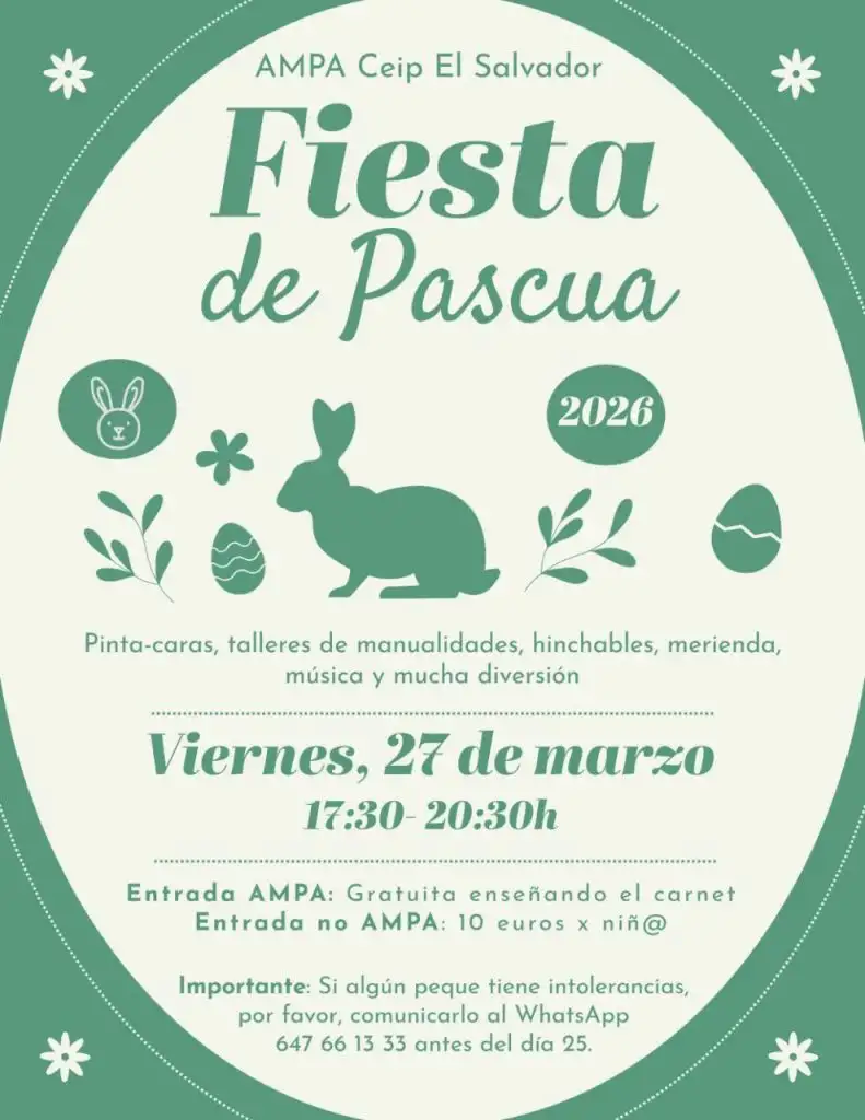 Deberán rellenar la solicitud los padres que deseen apuntar a sus hijos al servicio de escola matinera del CEIP EL SALVADOR. El coste del servicio será de 30€ (1 niño socio de AMPA) o 50€ (Hermanos socios de AMPA) siendo la cuota de +5€ los no socios.