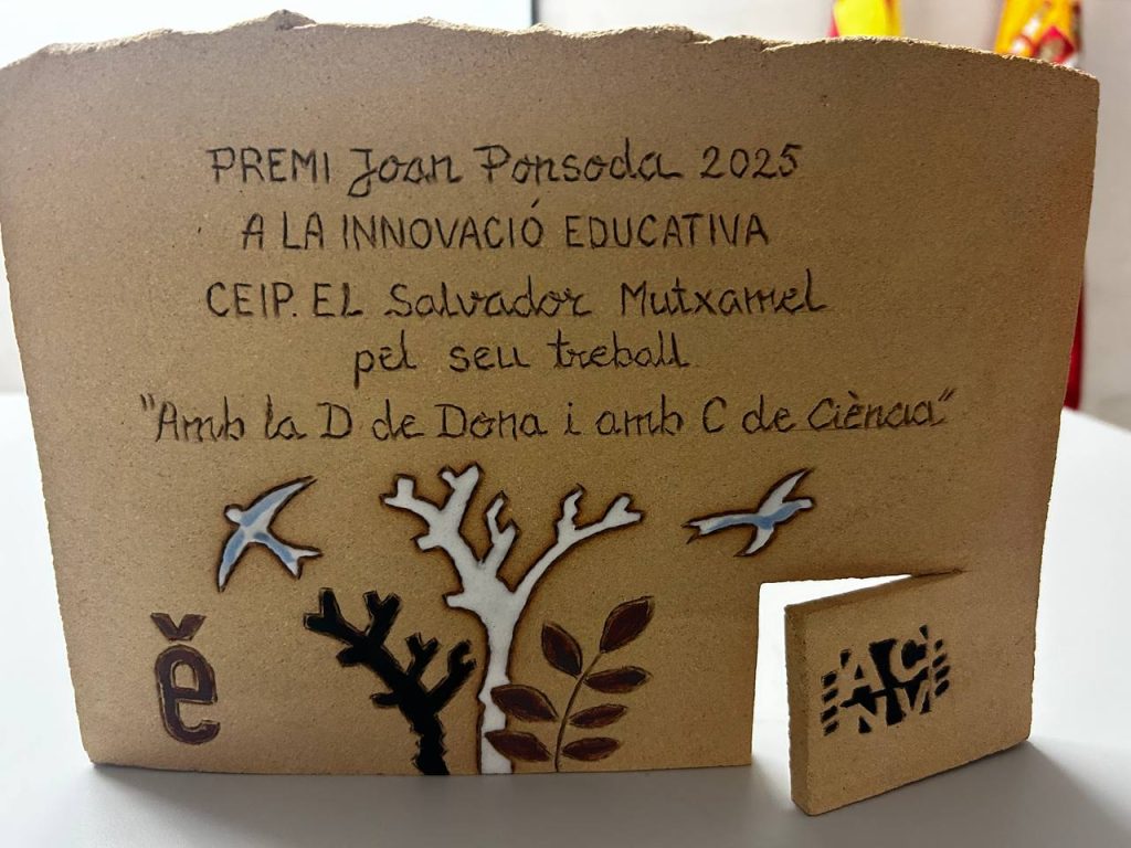 El passat divendres el CEIP EL SALVADOR va rebre el Premi Joan Ponsoda 2025 a la Innovació Educativa pel projecte “Amb D de Dona i amb C de Ciència”. Durant l’acte vam tindre l’oportunitat de comptar amb la participació d’exalumnes, què van compartir la seua experiència a l’aula amb les activitats del projecte, a més de la presència de científiques i científics que han col·laborat amb projecte a la nostra escola com per exemple, Julia Moltó i Josep Bernabeu Mestre. Enhorabona a tota la comunitat educativa pel vostre suport!