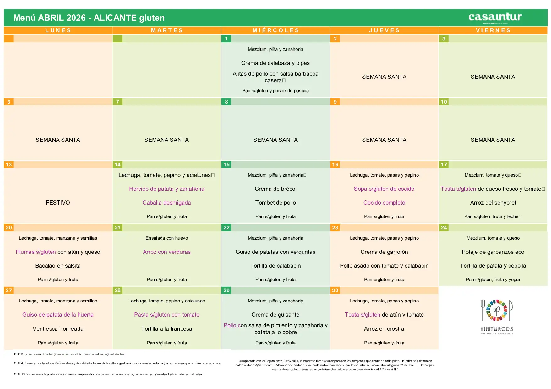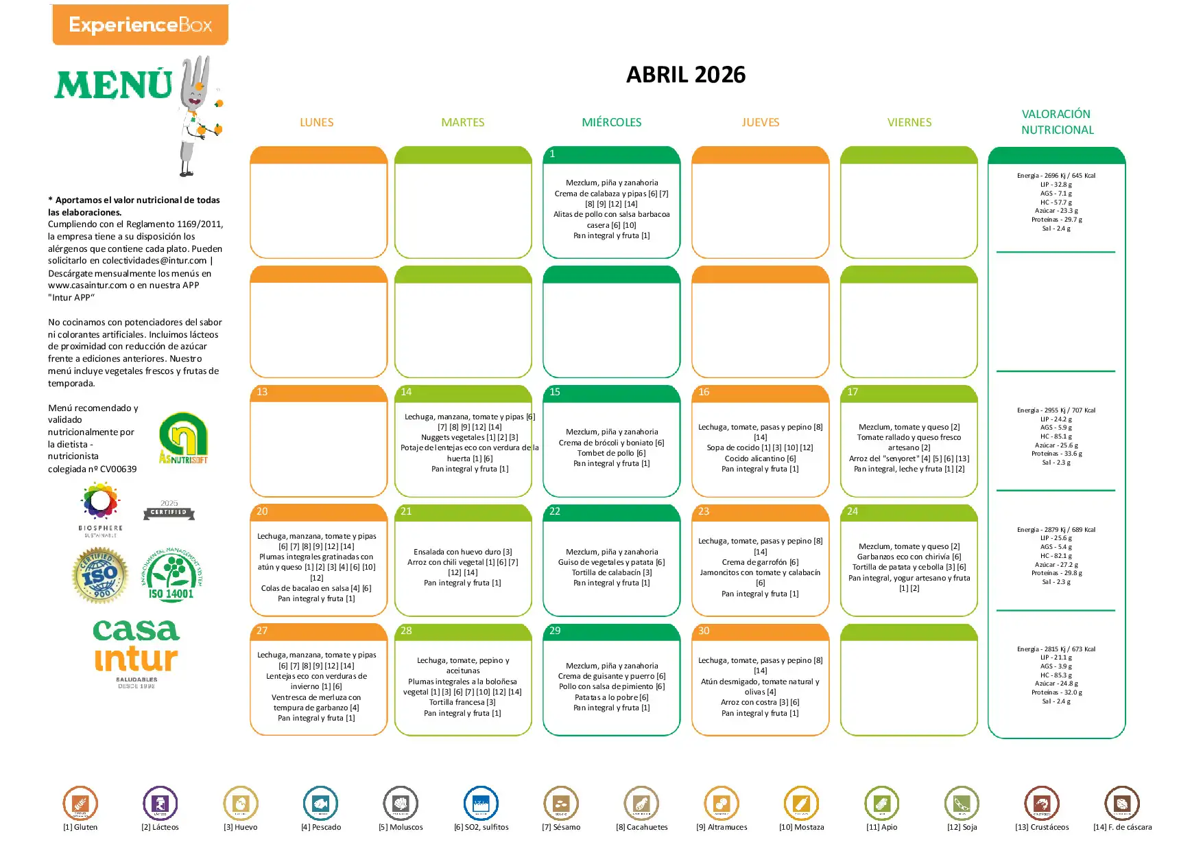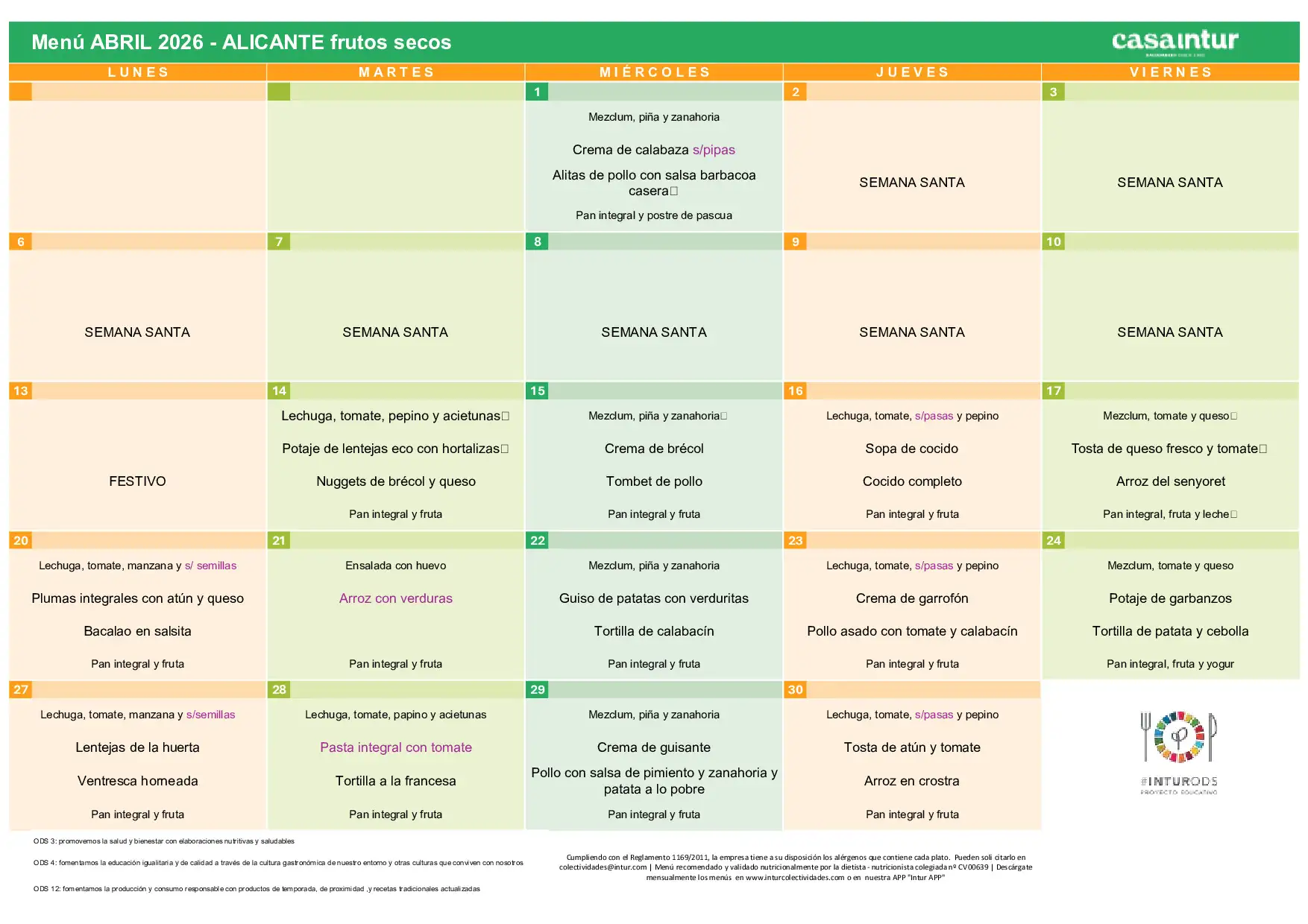 Directora CEIP Els Garrofers - Menú de abril de 2026