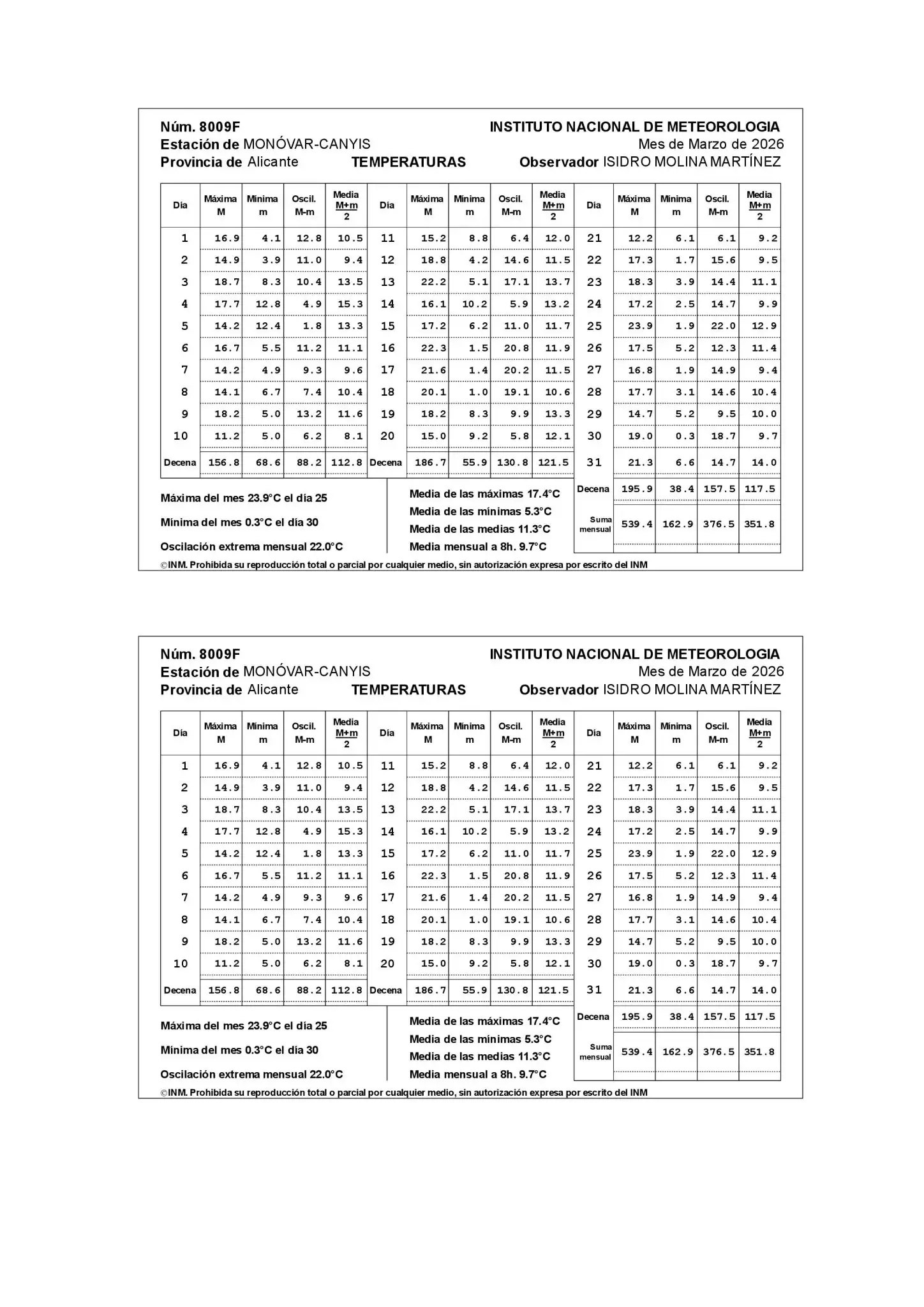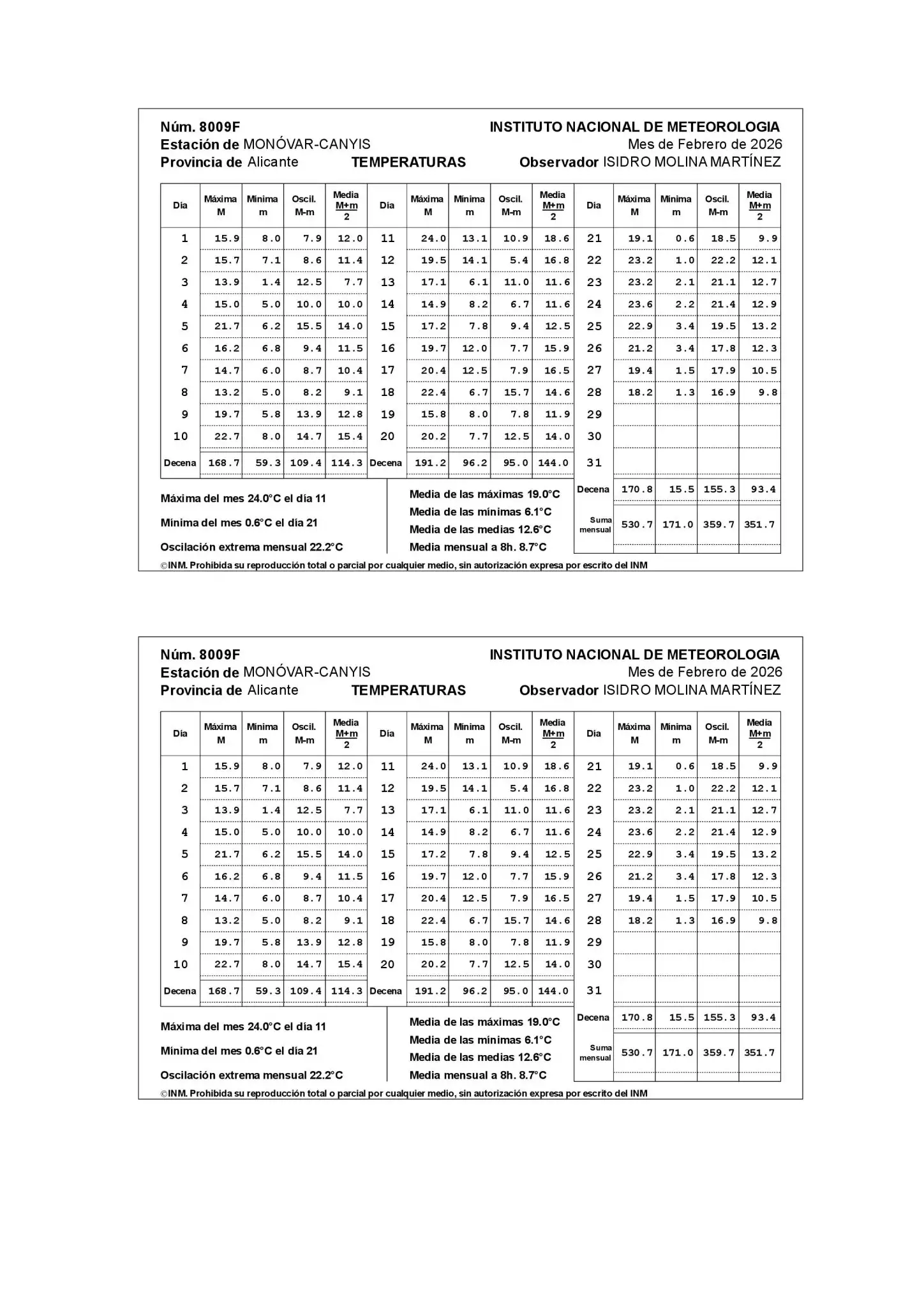 RESUM MENSUAL DE TEMPERATURES I PLUGES