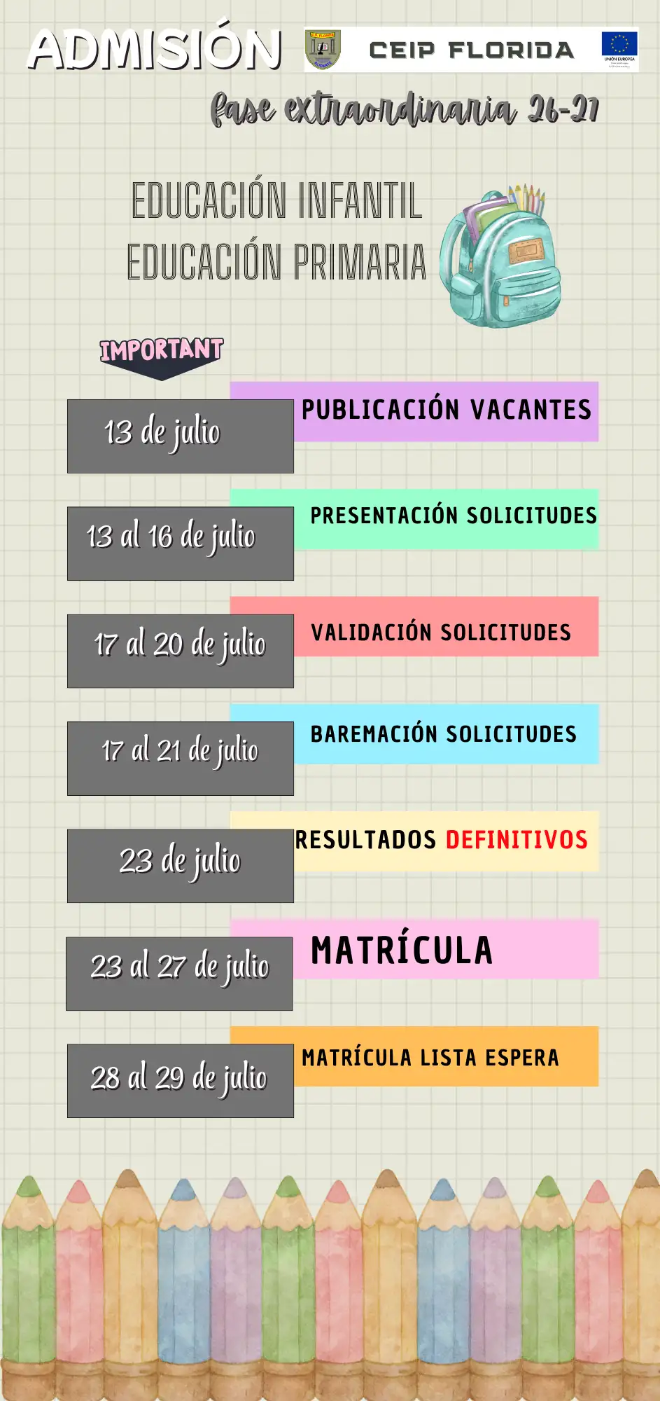 Calendario de la Fase Extraordinaria del proceso de admisión