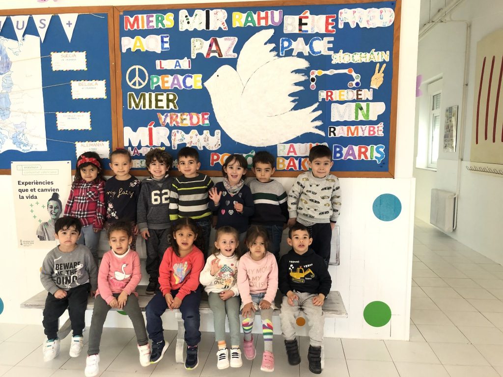 En el curs escolar 2019-2020 la celebració del Dia Internacional de la No Violència i la Pau ha tingut com a fil conductor el nostre projecte Erasmus+ “Captivating Innovation”. Durant les setmanes prèvies l’alumnat d’infantil va elaborar un mural amb la paraula PAU en diverses llengües europees. Durant l’acte de celebració vam ballar la dansa de la pau i l’alumnat de primària va retransmetre en directe un programa de radio on els nostres reporters i reporteres ens van presentar notícies referents a immigració posant en valor la necessitat de cooperació i solidaritat entre les persones i els estats.