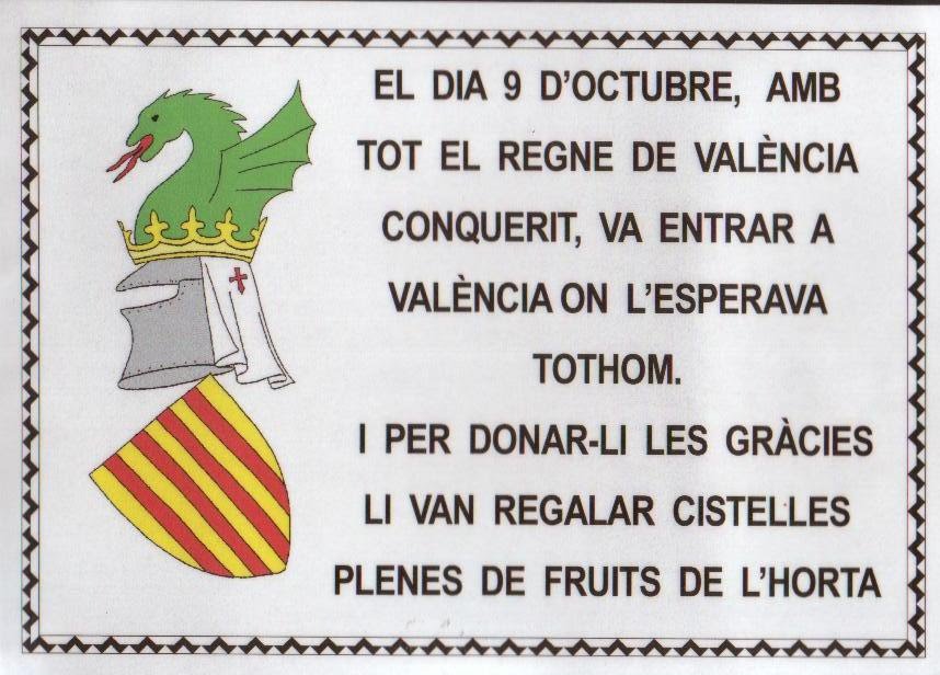 El rei Jaume I va entrar a València un 9 d’Octubre i