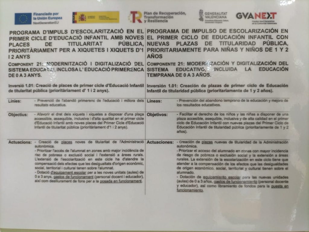 El edificio de infantil tiene 2 aulas: una de infantil 2 años (creada el curso 2021-2022) y otra de infantil de 3 años.