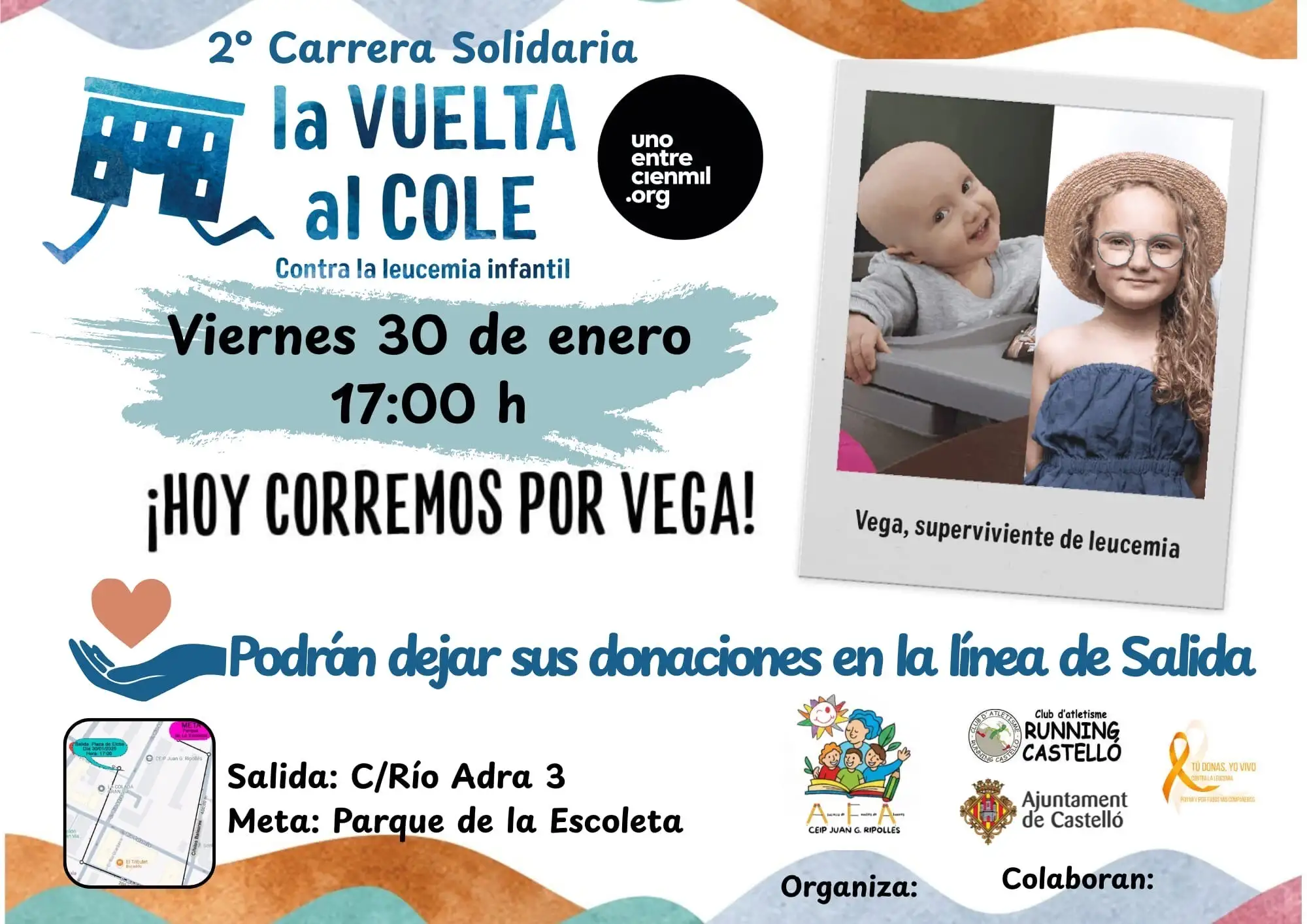 “Hola familias, os esperamos este viernes día 30 a partir de las 16:30 h para entregar vuestro donativo y recoger el dorsal para la segunda carrera solidaria contra la leucemia infantil” Muchas gracias. Saludos.