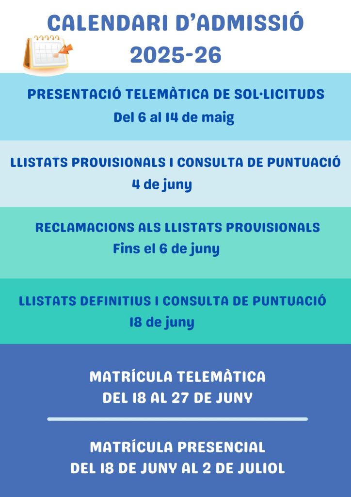 En esta pàgina podeu trobar tota la informació sobre el procés de matriculació per al pròxim curs 2025-2026.
