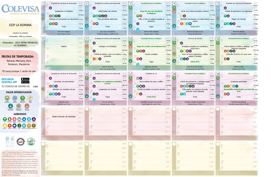 MENU DICIEMBRE 2025