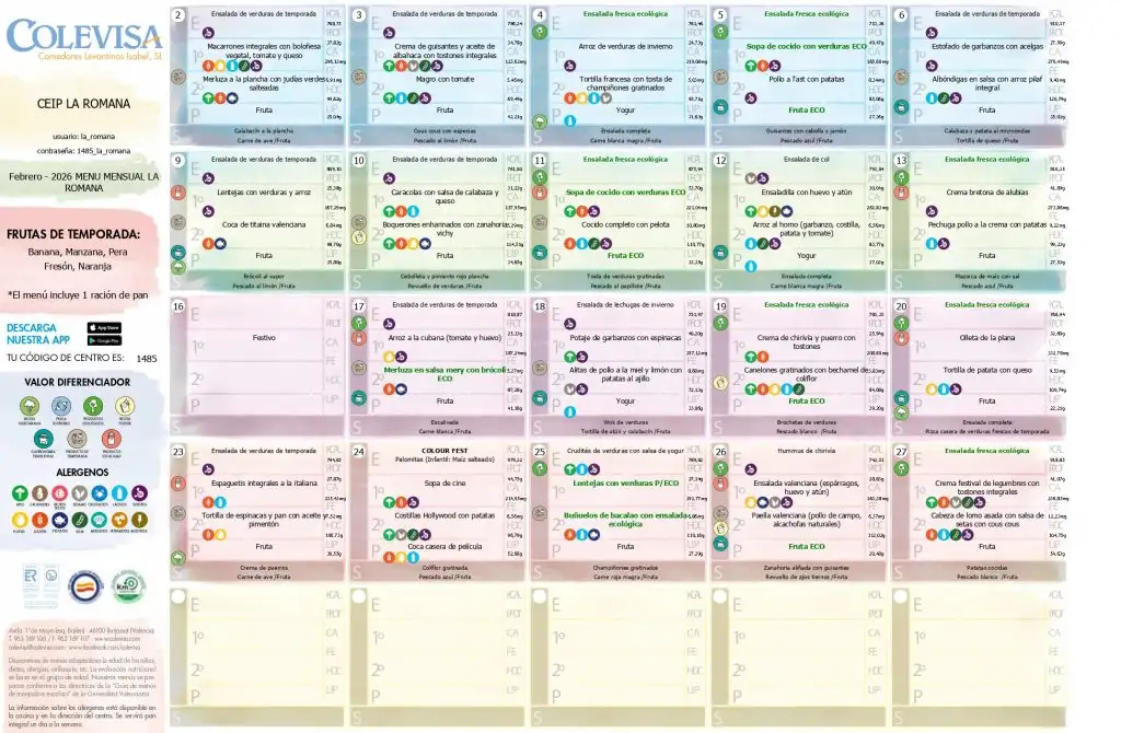 MENU FEBRERO 2026