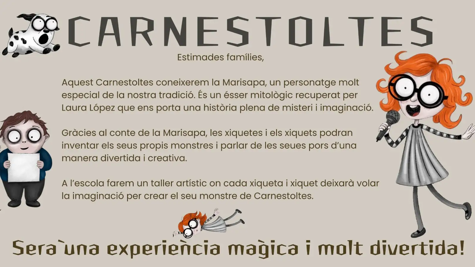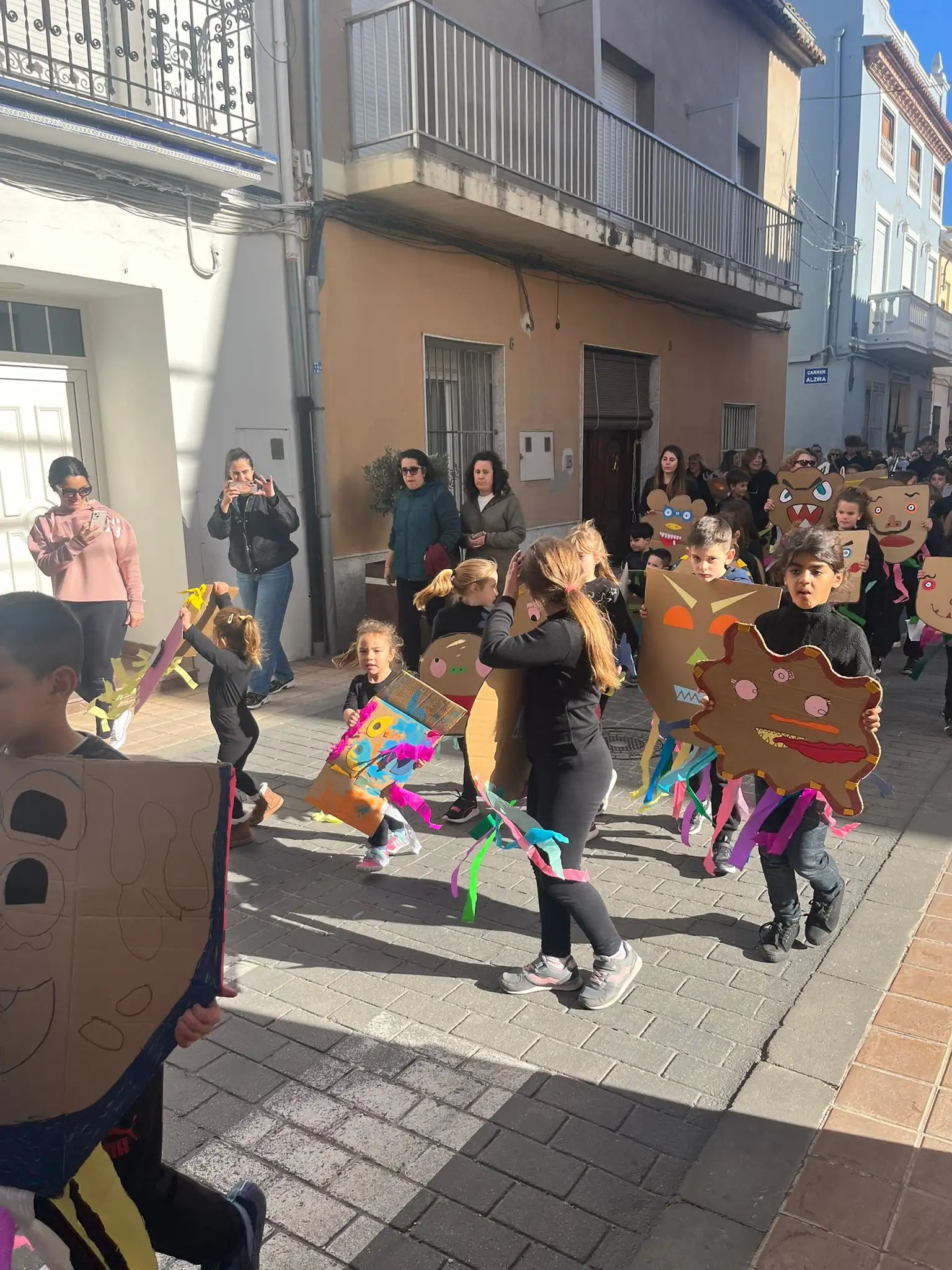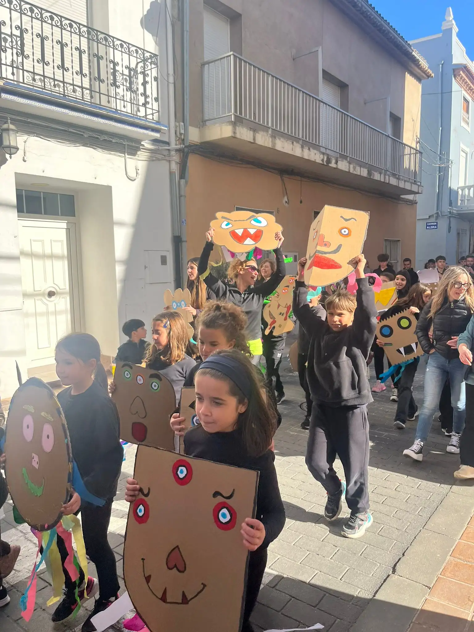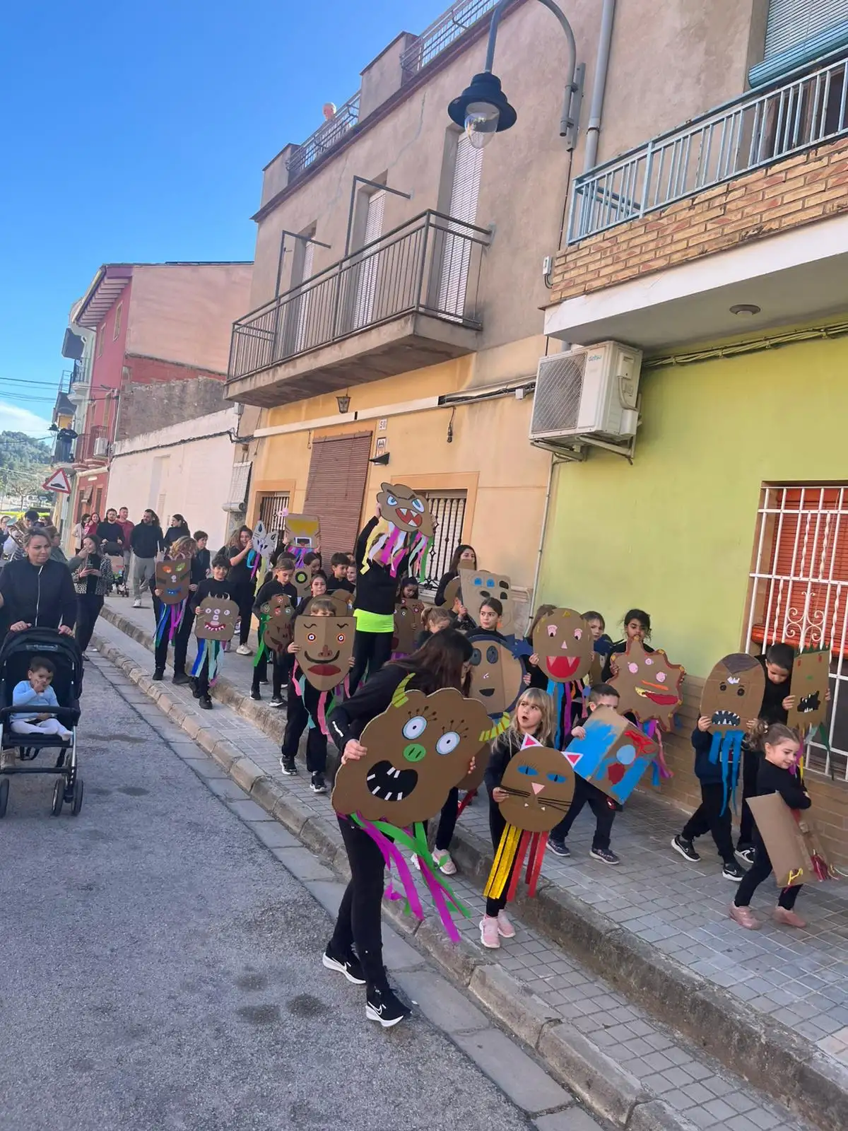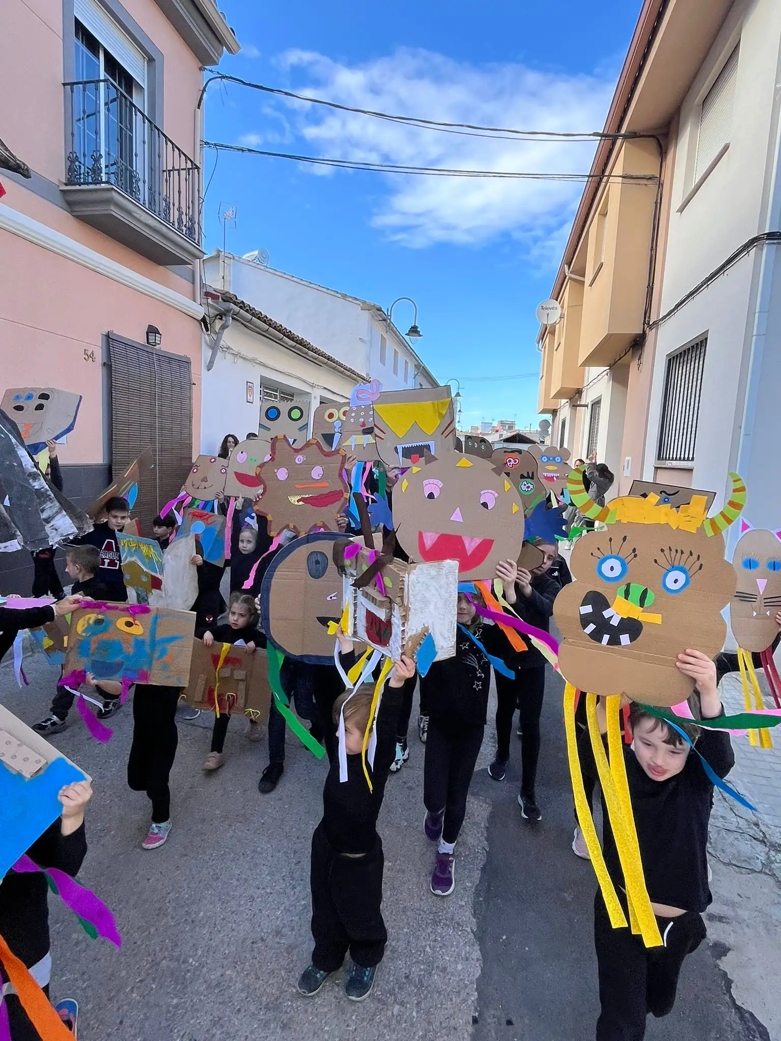 Este curs hem celebrat el carnestoltes amb moltes activitats. Ambientat en el conte de “La Marisapa”, la setmana de carnestoltes ha estat d’allò més divertida. Amb esta temàtica hem volgut donar-li un context proper als alumnes, ja que és una història basada en el nostre poble i molts xiquets han llegit el llibre. El dijous 5 de febrer a la vesprada, les nostres companyes d’Infantil ens van presentar la temàtica del carnestoltes d’enguany a través de la representació del conte de “La Marisapa”. Després cantàrem tots junts la cançó i donàrem les idees per fer el nostre propi monstre. Vam elaborar a manera de treball en cadena diferents tiretes acolorides per als monstres de tots.