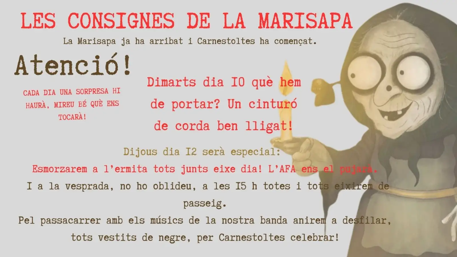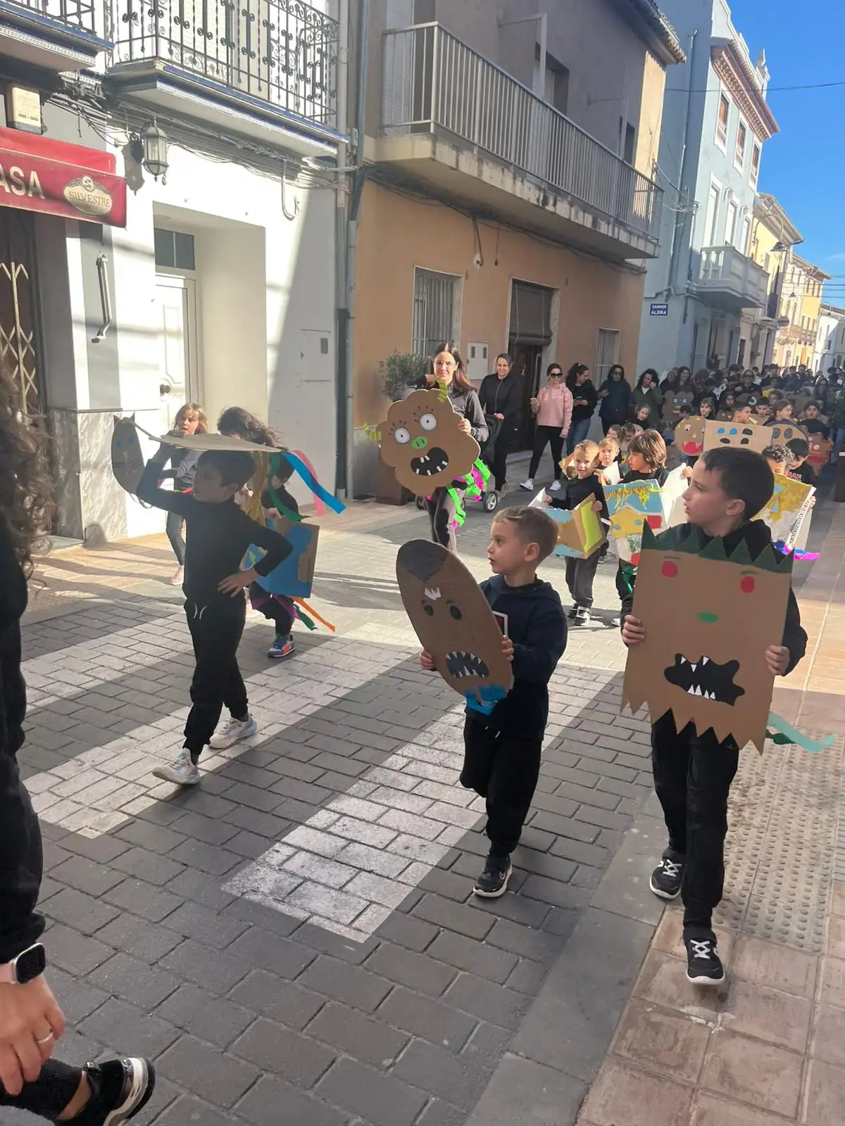 El dijous 12 va ser un dia molt complet, tot i el vent que bufava. Al matí anàrem a esmorzar a l’ermita i l’AMPA ens va portar un entrepà i un suc per a cadascú. A la vesprada, cadascú amb el seu monstre, eixirem a fer una cercavila pel poble acompanyats dels músics de la banda del poble. A més, abans de la cercavila, els alumnes de 5é i 6é protagonitzaren una batucada feta amb instruments reutilitzats.