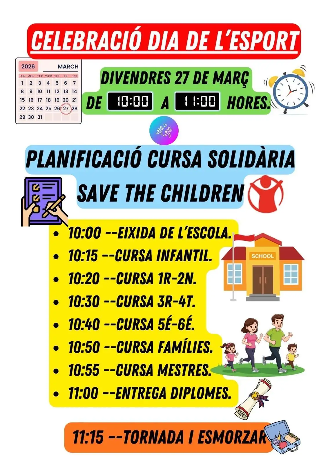 El passat divendres 27 de març vam celebrar al nostre centre el Dia de l’Esport, una jornada plena d’energia, convivència i valors positius. Dins d’aquesta jornada, vam participar en la cursa solidària de Save the Children, una iniciativa que combina l’activitat física amb la solidaritat.