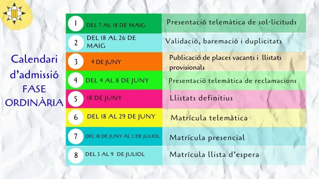 Calendari d’admissió