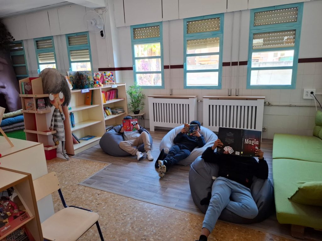 L’alumnat acudeix per torns a l’hora del pati durant la setmana. Poden passar una bona estona llegint o emportant-se un llibre prestat per a 15 dies.