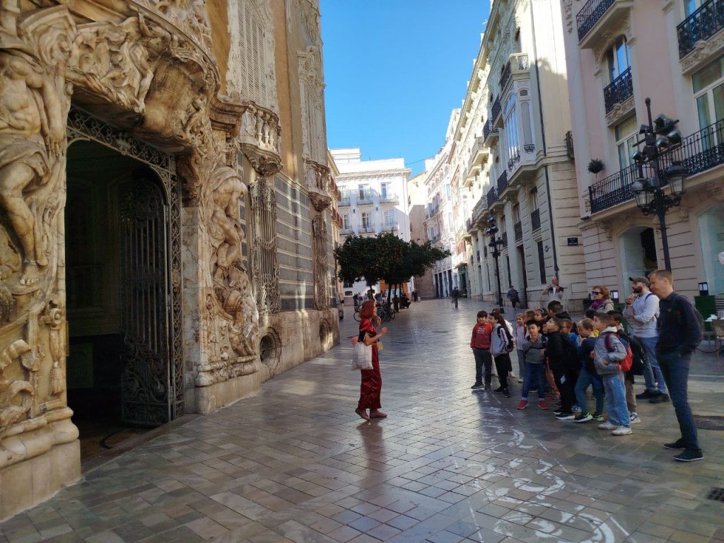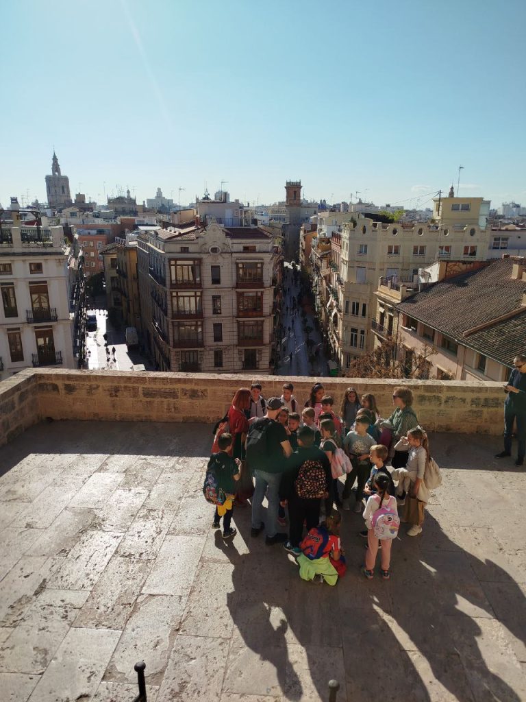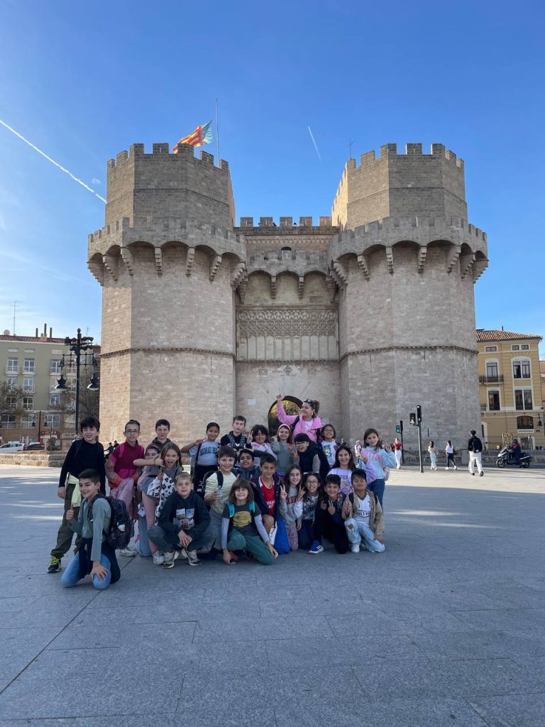 Segundo ciclo de primaria hicimos una excursión en las Torres de Serrano y al palacio del Marqués de dos Aigües. Fuimos en tranvía, y después almorzamos en el parque. Cuando empezó el Free Tour, nos dividimos en 2 grupos: el primero veía las Torres de Serrano con una guía y el otro grupo iba al palacio del Marqués de Dos Aguas, y posteriormente, al revés. En las Torres vimos: agujeros para lanzar las flechas, dibujos tallados en la piedra y las puertas eran gigantes y de madera. En el Marqués de Dos Aguas vimos muchas salas como por ejemplo: una sala china, una cocina de la época y un cuarto con una bañera dentro.