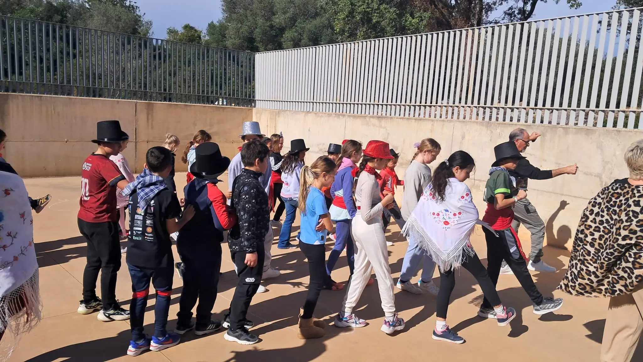 Por la tarde, el hall de la escuela se llenó de color con el reparto de disfraces, y posteriormente salimos en desfile hacia la plaza, donde el alumnado ofreció bailes y danzas que habían preparado con mucha ilusión.