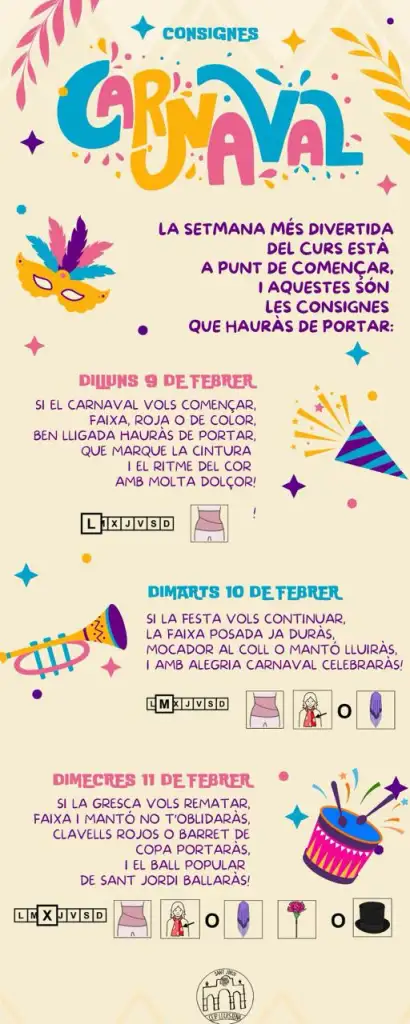 Durant la setmana del 9 al 12 de febrer, a la nostra escola hem celebrat una de les festes més divertides i especials del curs: el Carnaval.
