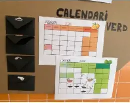 Calendari verd: Cada dia anotem els treballs que fem a l’hort, per tenir un registre detallat de tot el que hem aconseguit i aprés.