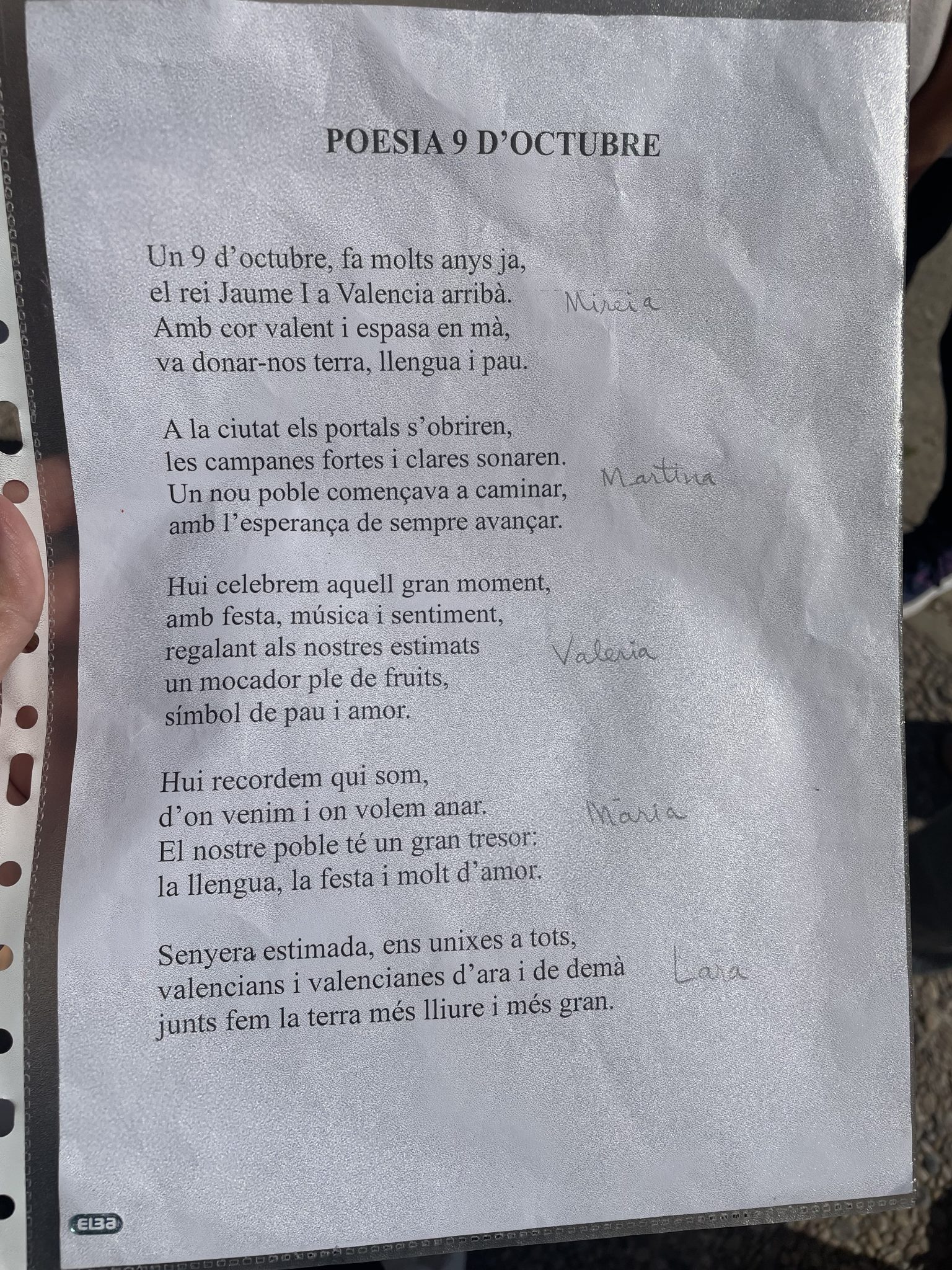 POESIA 9 D’OCTUBRE: poesia feta pel nostre alumnat en la celebració del dia de la Comunitat Valenciana.