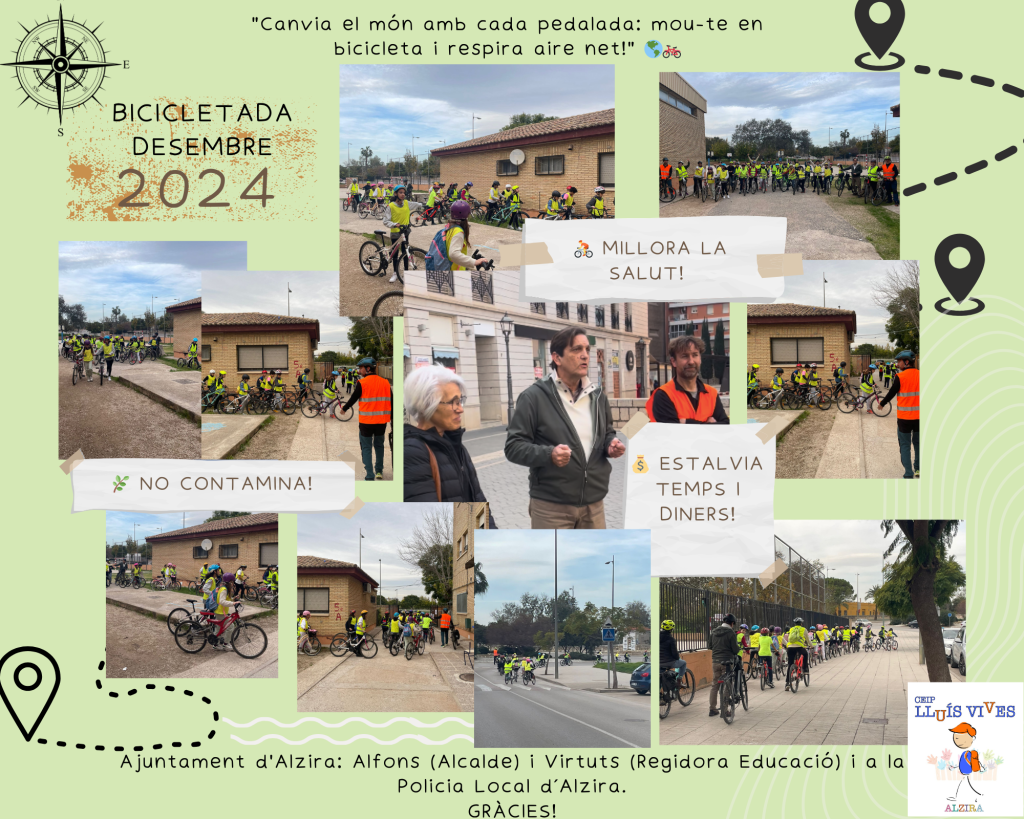 Dijous 19 de desembre es va realitzar una ruta cicloturista al voltant de l’Anell Verd d’Alzira i també per dins de la població fins l’Ajuntament d’Alzira amb l’alumnat de 6é.
