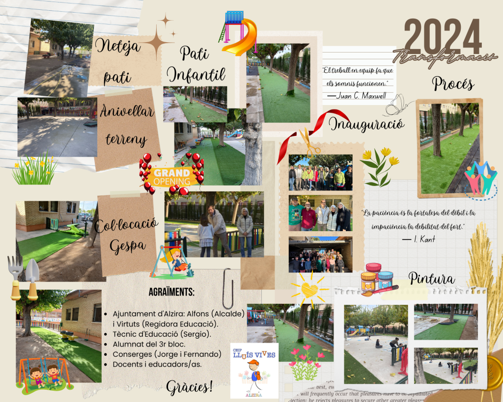 Des del CEIP Lluís Vives volem agrair de tot cor a totes les persones que han participat en la millora del nostre pati d’infantil. La vostra implicació i esforç han estat fonamentals per aconseguir-ho!