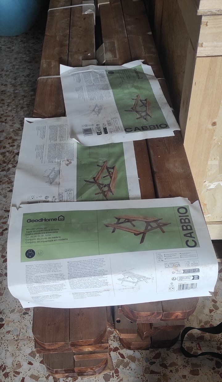 Mesas de picnic preparadas para su instalación