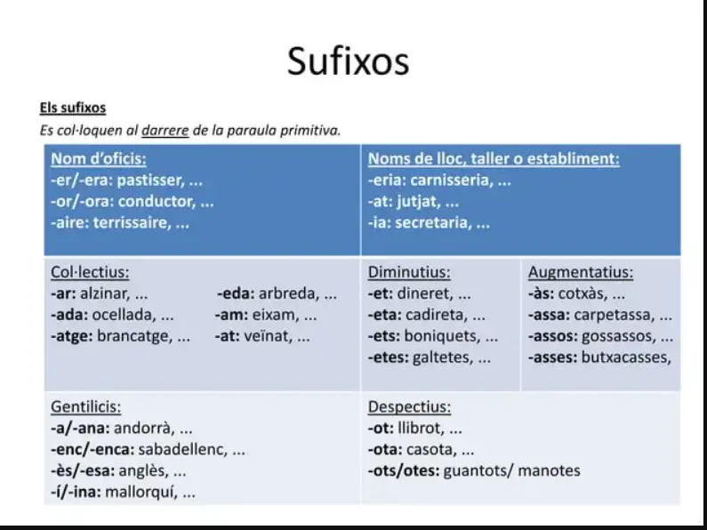 - Els sufixos.