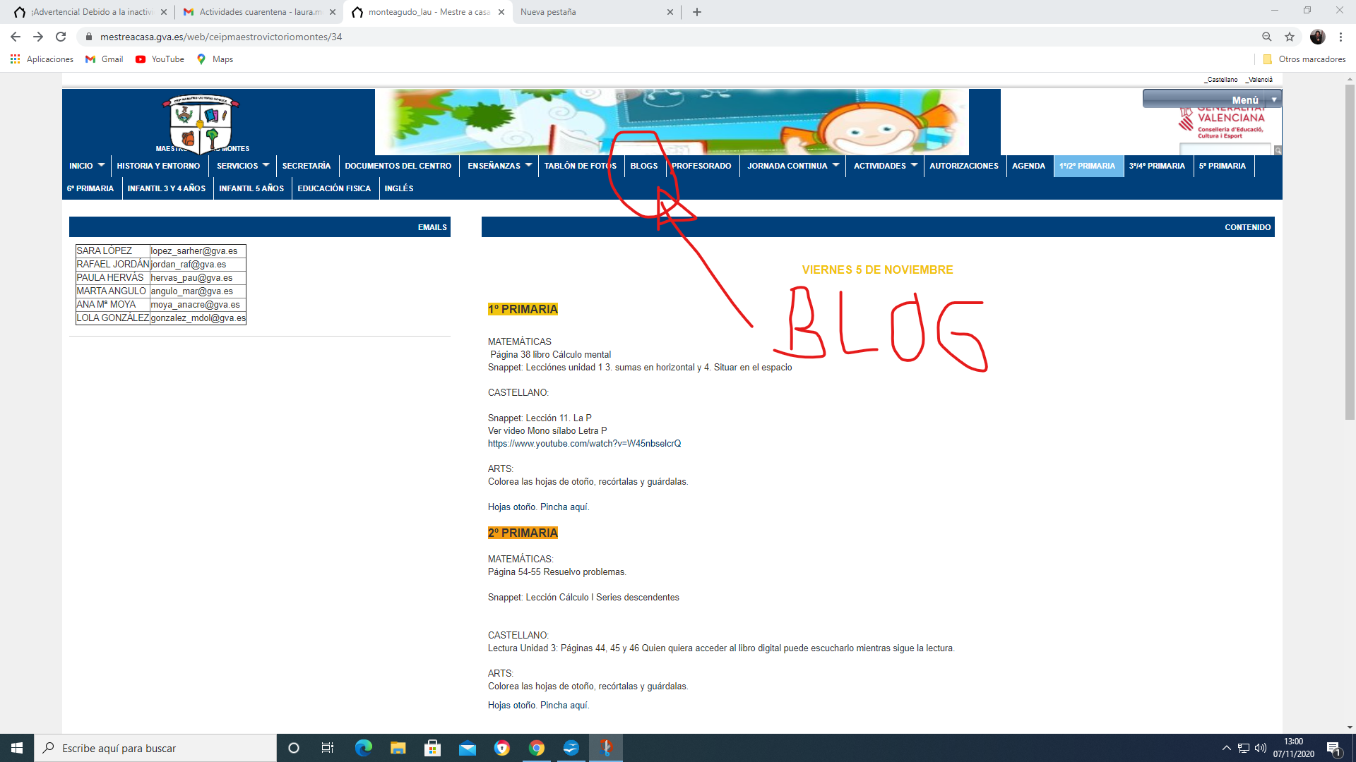 Os dejamos unas capturas de pantalla que os ayudarán a acceder al Blog de la docente Laura Monteagudo, en el que ha programado actividades para esta semana.Un cordial saludo.