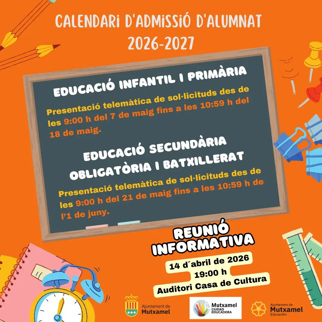 El pròxim 14 d’abril a les 19.00 h es realitzarà una xarrada informativa sobre el procés d’admissió per al curs 2026/2027.