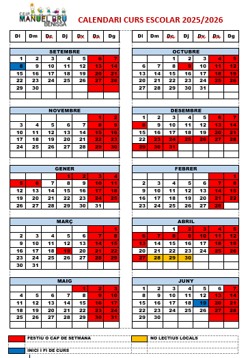 El curs escolar 2.024/2.025 començarà el dia 9 de setembre i finalitzarà el dia 18 de juny.