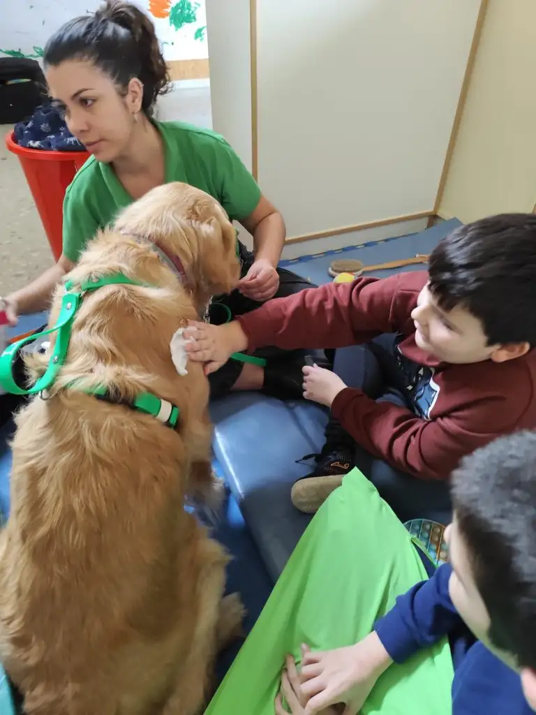 En cada sesión contamos con la participación de Lucca, el perro de intervención, y de Mª Jesús, terapeuta ocupacional experta en Terapia Asistida con Perros y con amplia formación en infancia e Integración Sensorial.