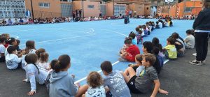 Hui, tot l’alumnat del centre ha eixit al pati per participar en una activitat conjunta…
