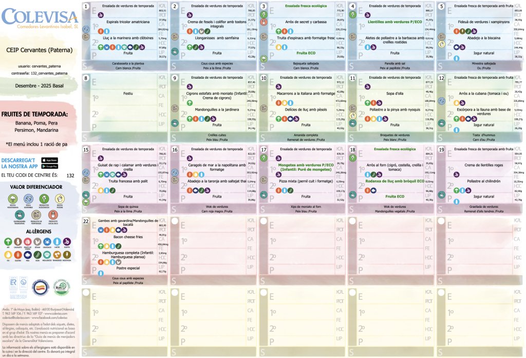 MENÚ DESEMBRE 2025