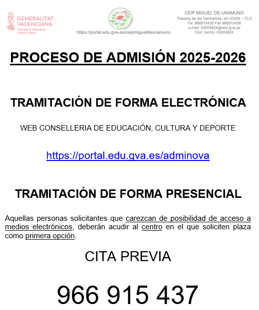 Web para tramitar la admisión telemática desde casa. Haga clic en la siguiente imagen