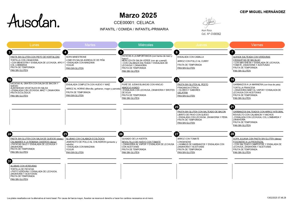 Menú celiaquia