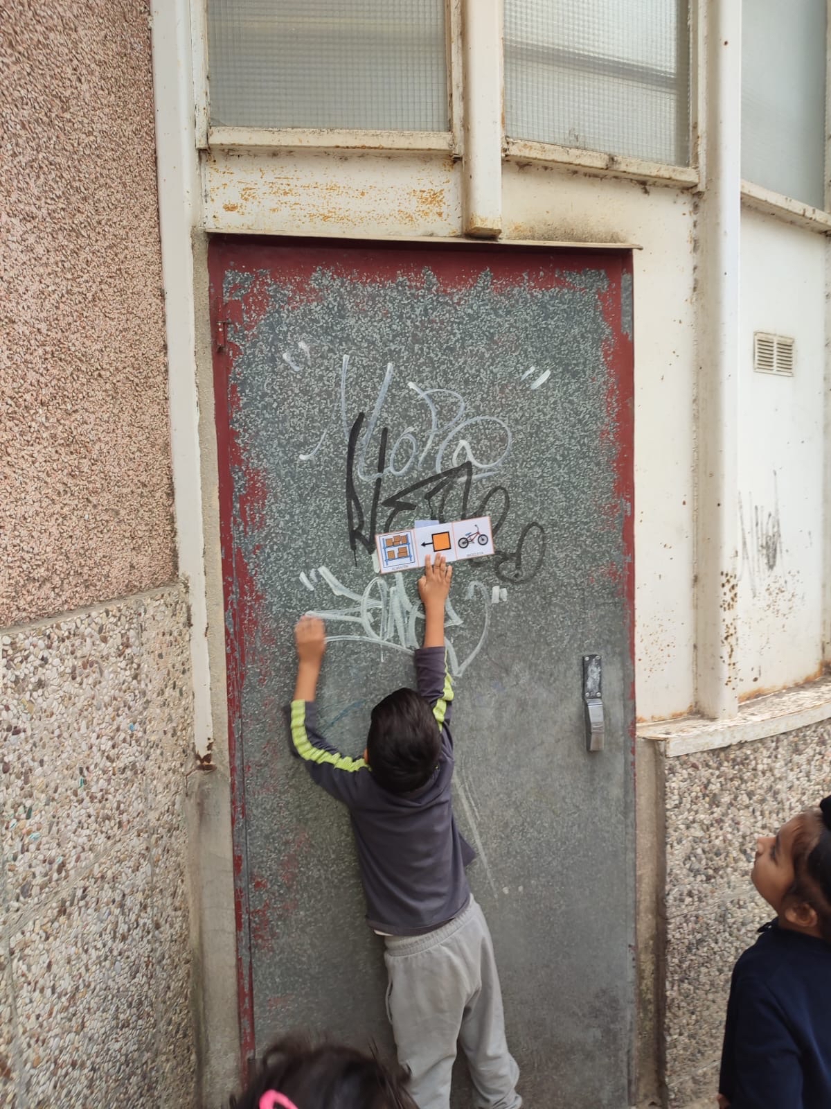 En esta fase el alumnado, tras la visualización del vídeo de sensibilización de la fase 2 del proyecto, colocaron pictogramas representativos por el patio para hacerlo accesible a todo el alumnado.