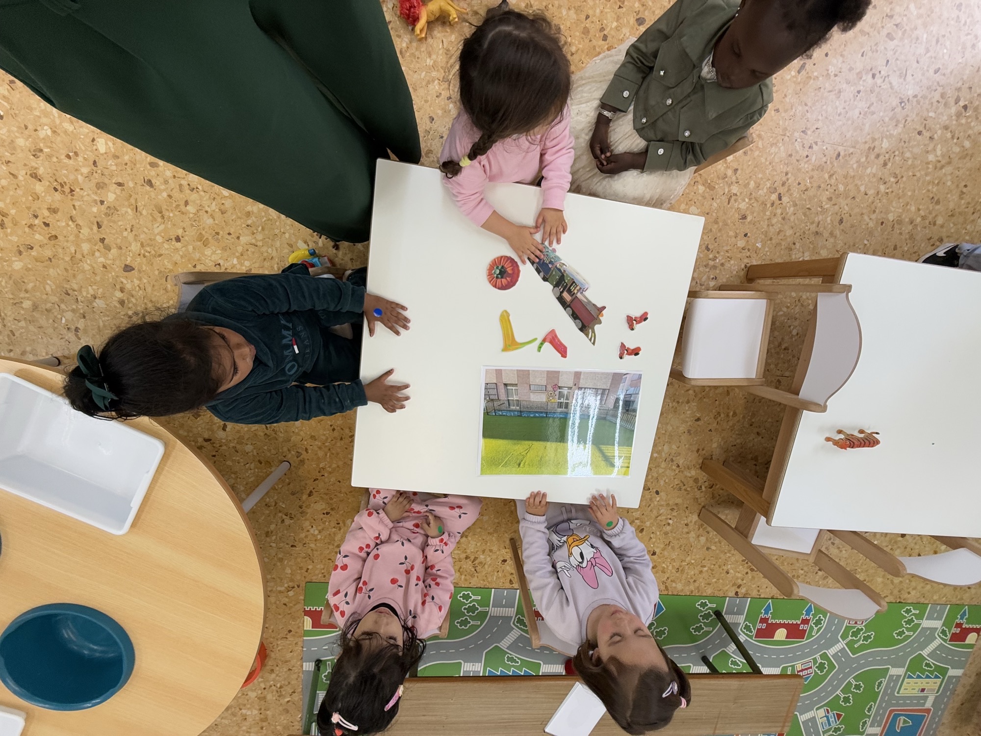 Durante esta primera fase, los alumnos de infantil, bajaron a sus respectivos patios y los observaron, hablando sobre los elementos que forman parte de él y tratando de recordar dónde se situaban. Después, en sus aulas, encontraron una lámina A3 de su patio vacío, así como recortables de diferentes elementos (árboles, columpio, césped) que tenían que colocar en el sitio en el que se situaban en la realidad. El plano final de cada clase ha quedado expuesto en la puerta del aula, donde un jurado lo ha valorado.