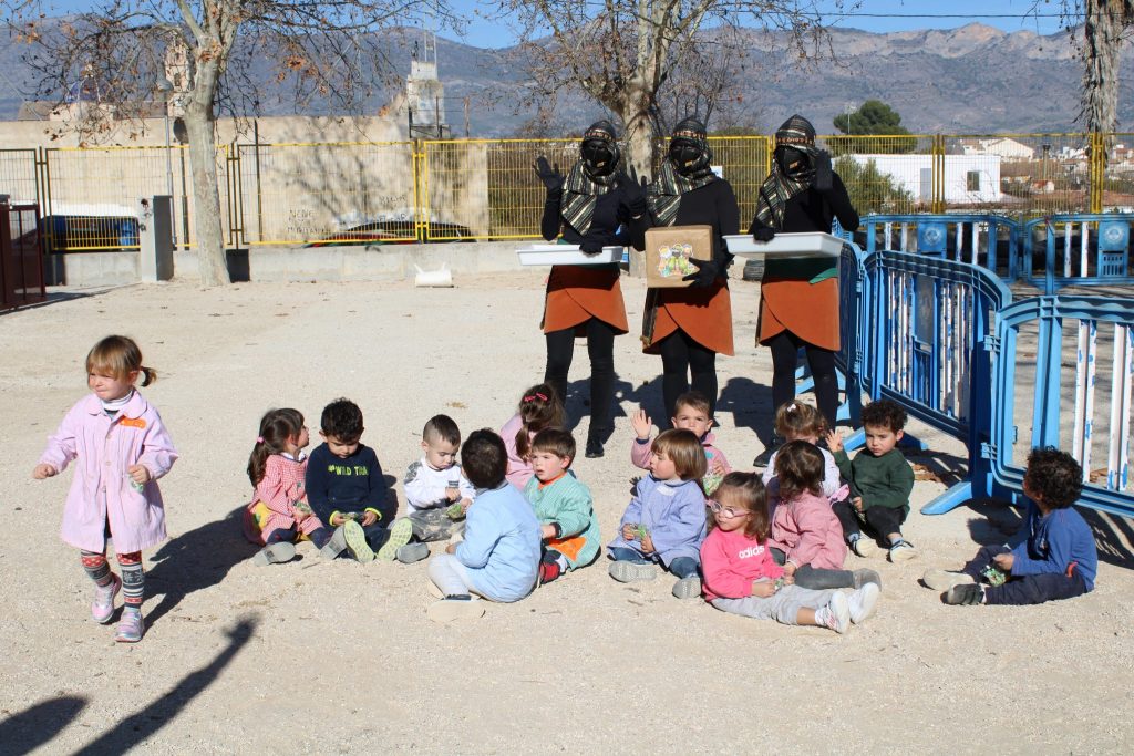 L'últim dia d'escola vam tenir una gran sopresa: els patges van baixar des de la muntanya per visitar els alumnes de la nostra escola. Els alumnes d'infantil tenien unes caretes d'il.lusió, esperant-los vindre per donar-los la carta que havien fet. Després van visitar els alumnes de primària. I tots, com a bons murers, els vam dir: