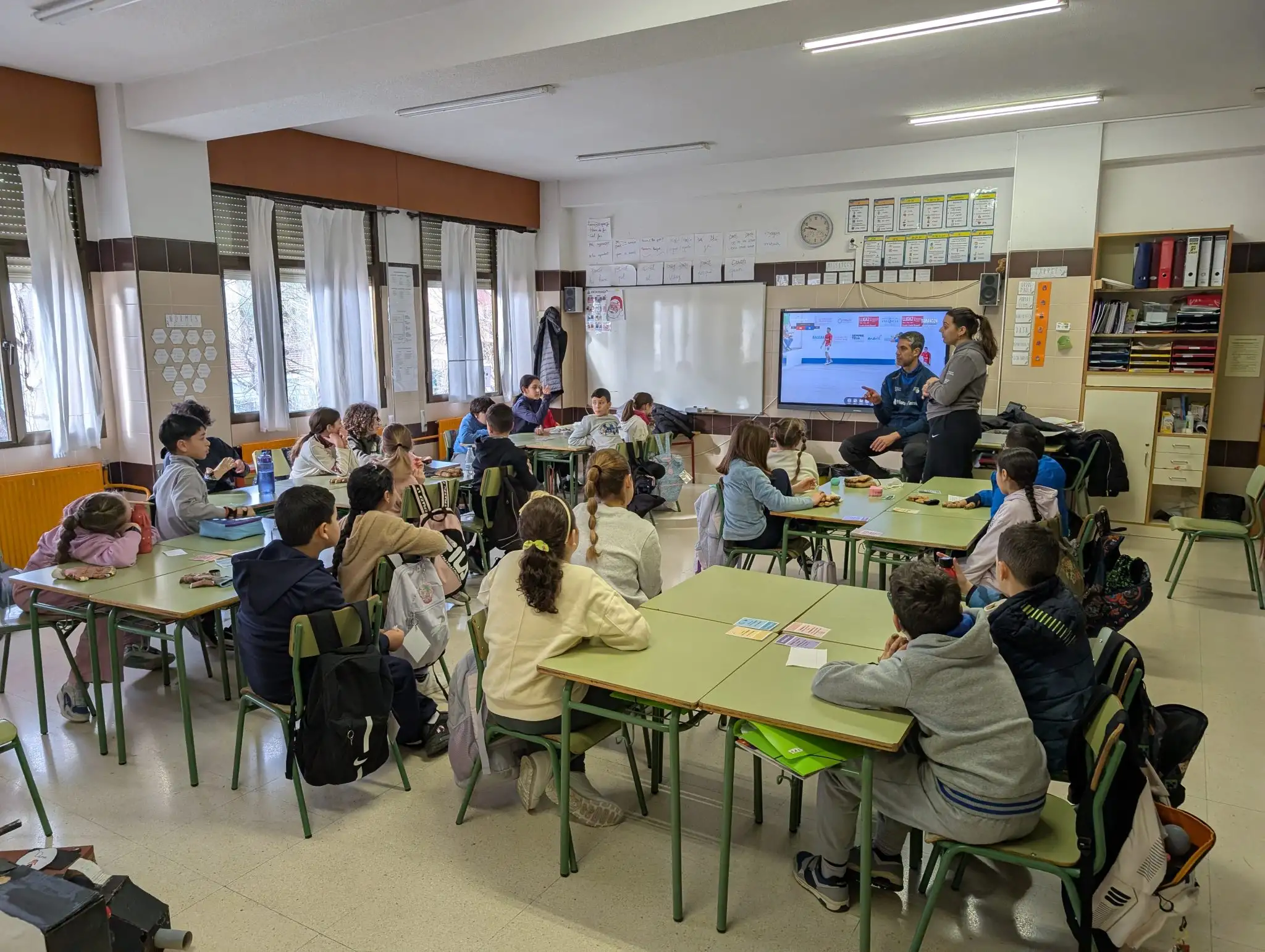 Aquest trimestre l’alumnat de 4t ha participat en el programa de pilota a l’escola. Hem rebut la visita de la jugadora professional, Myriam Vidal i del tècnic i també jugador professional Javi Sansó.