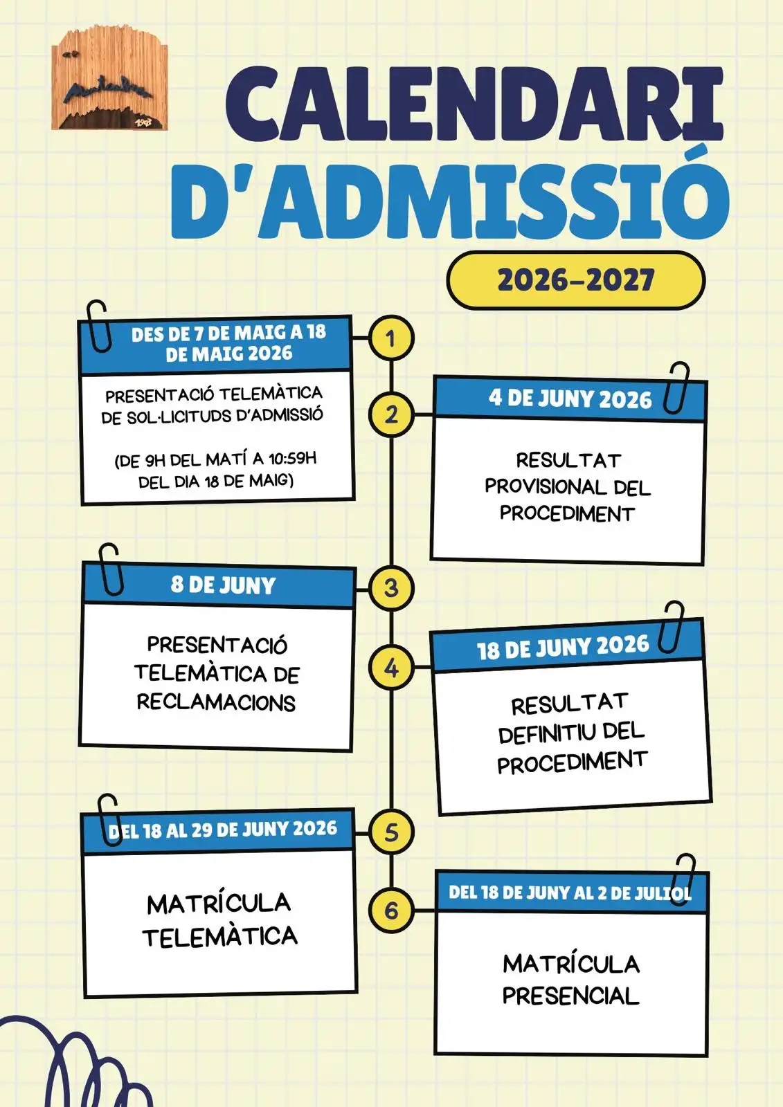 ADMISSIÓ DE L’ALUMNAT PER AL CURS 2020-2021 La data d’admissió de l’alumnat per al proper curs 2020-2021 serà: Presentació sol·licitud: Del 8 al 16 de … Llegir més