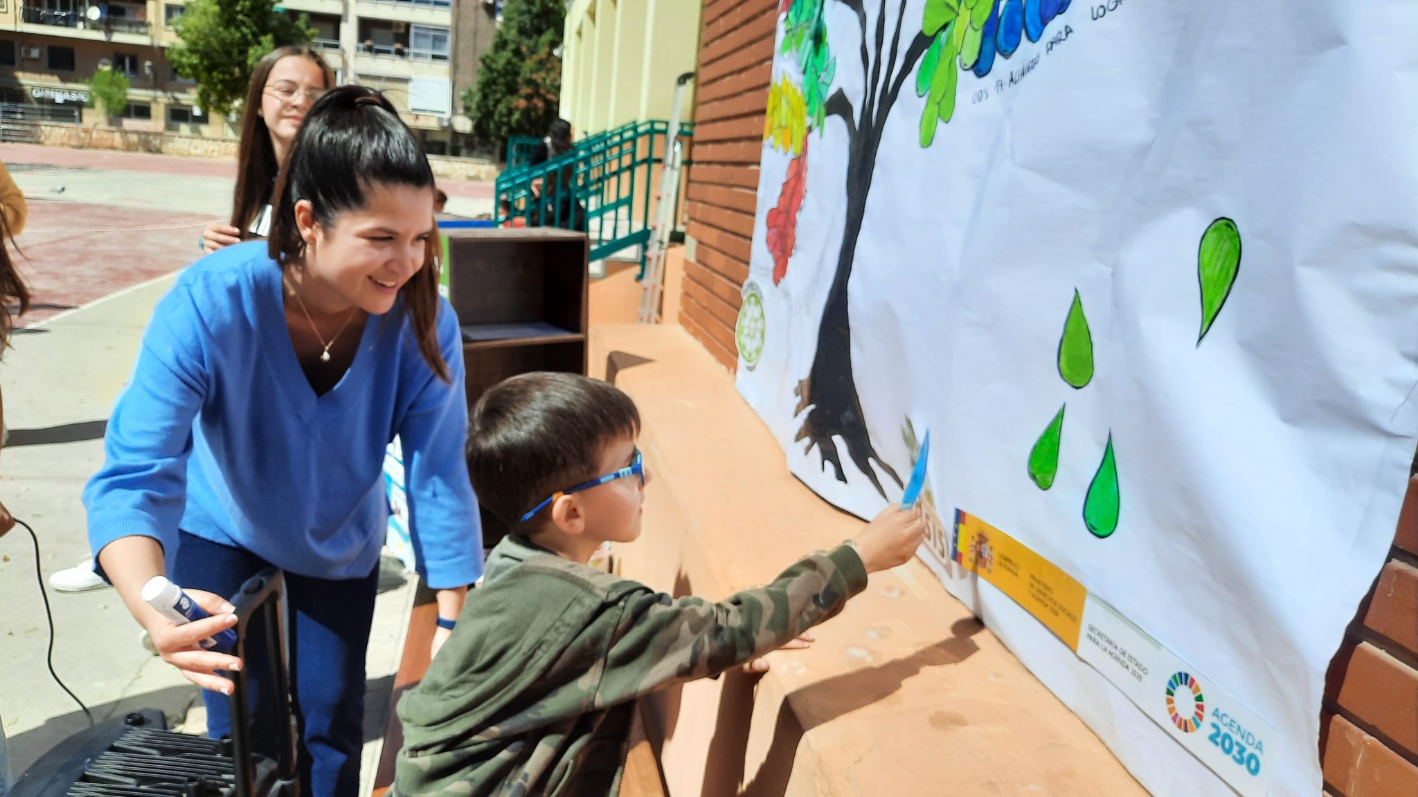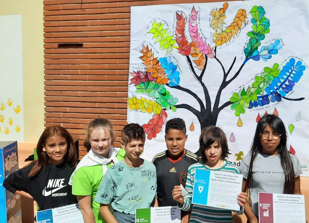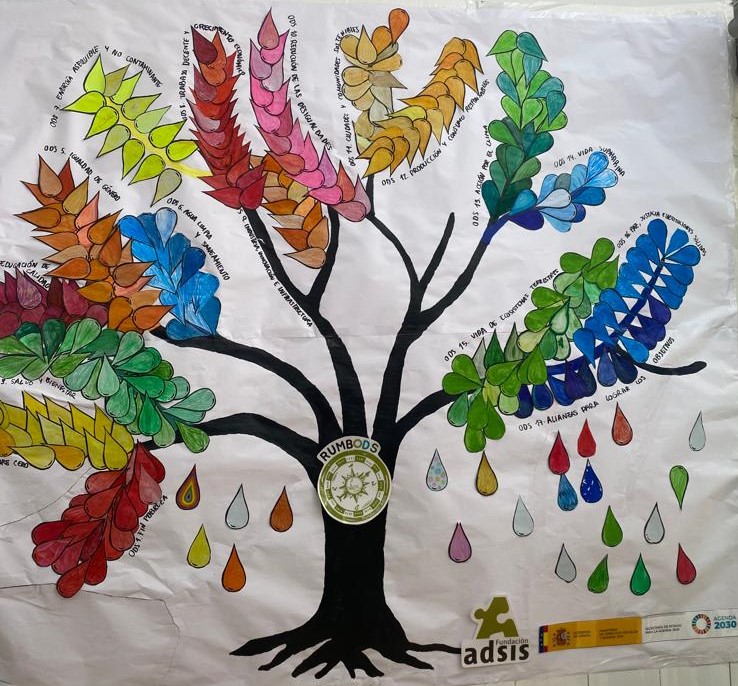 Árbol decorado por todo el alumnado del centro. Cada rama representa un ODS, por ello sus hojas tienen el color del ODS que representan.