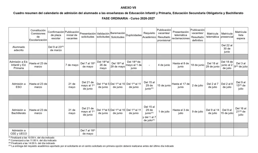 Se ha publicado la Resolución de 25 de febrero de 2026, de la Dirección General de Centros Docentes, por la cual se establece el calendario y se dictan instrucciones respecto al procedimiento de admisión del nuevo alumnado en el centro para el curso 2026-2027.